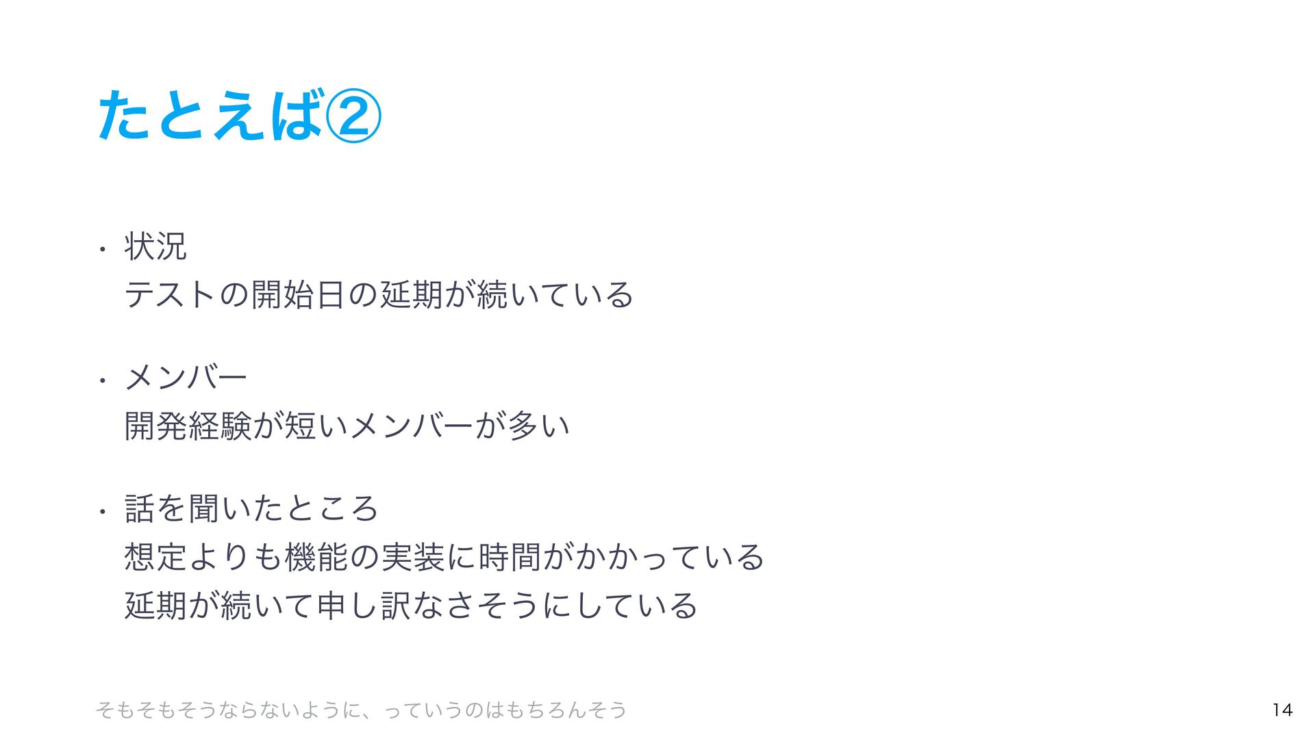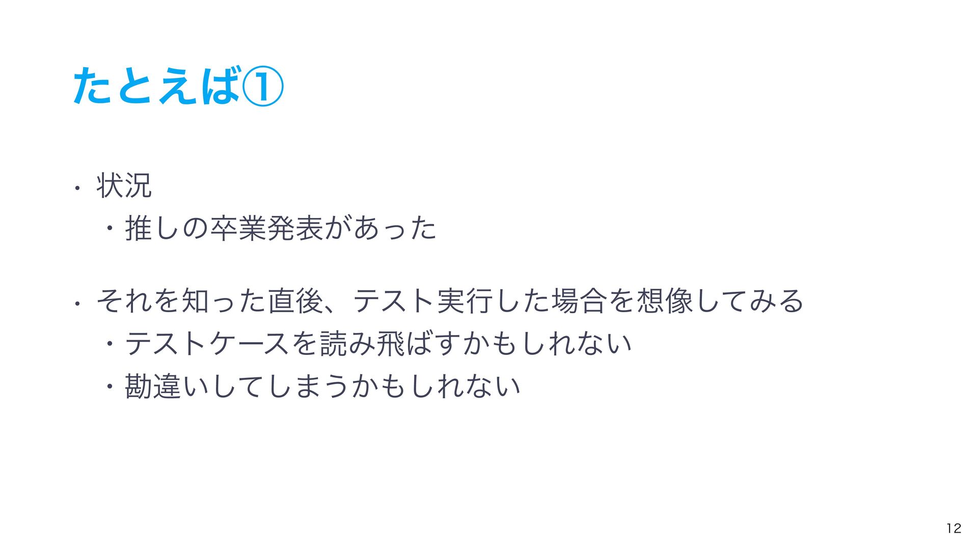 ͨͱ͑ᶃ w ঢ়گ ɾਪ͠ͷଔۀൃද͕͋ͬͨ w ͦΕΛͬͨޙɺςετ࣮ߦͨ͠߹Λ૾ͯ͠ΈΔ ɾςετέʔεΛಡΈඈ͔͢͠Εͳ͍ ɾצҧ͍ͯ͠͠·͏͔͠Εͳ͍