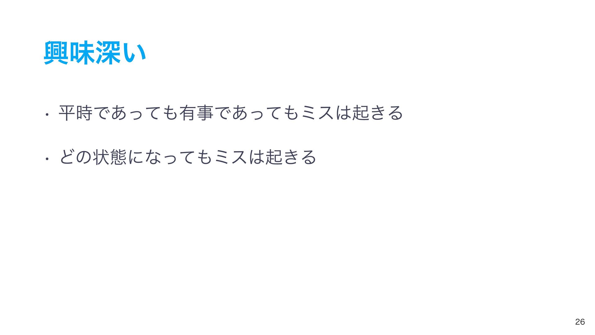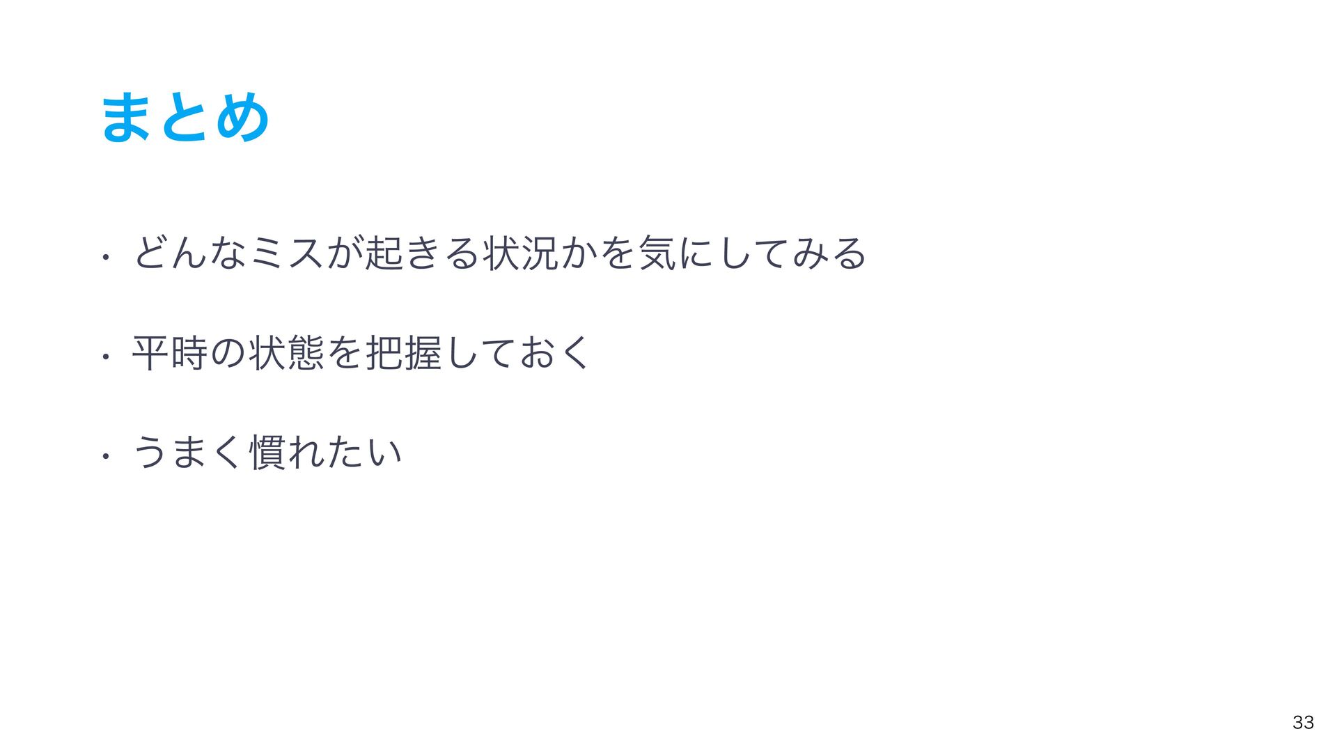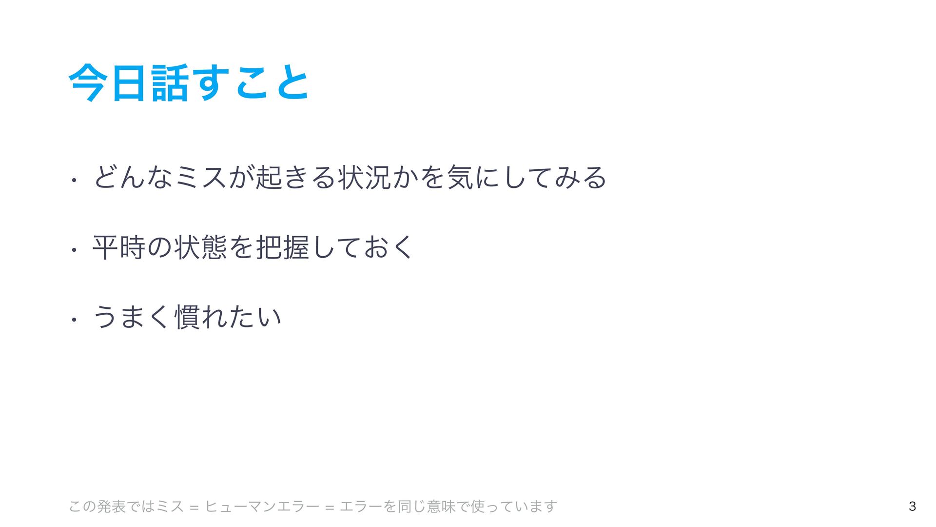 ࠓ͢͜ͱ w ͲΜͳϛε͕ى͖Δঢ়گ͔Λؾʹͯ͠ΈΔ w ฏ࣌ͷঢ়ଶΛѲ͓ͯ͘͠ w ͏·͘׳Ε͍ͨ ͜ͷൃදͰϛεώϡʔϚϯΤϥʔΤϥʔΛಉ͡ҙຯͰ͍ͬͯ·͢