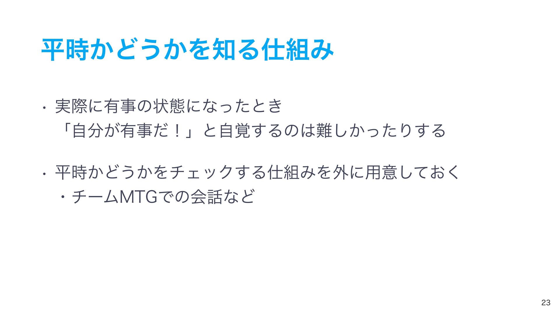 ฏ͔࣌Ͳ͏͔ΛΔΈ w ࣮ࡍʹ༗ࣄͷঢ়ଶʹͳͬͨͱ͖ ʮ͕ࣗ༗ࣄͩʂʯͱ֮ࣗ͢Δͷ͔ͬͨ͠Γ͢Δ w ฏ͔࣌Ͳ͏͔ΛνΣοΫ͢ΔΈΛ֎ʹ༻ҙ͓ͯ͘͠ ɾνʔϜ.5(ͰͷձͳͲ