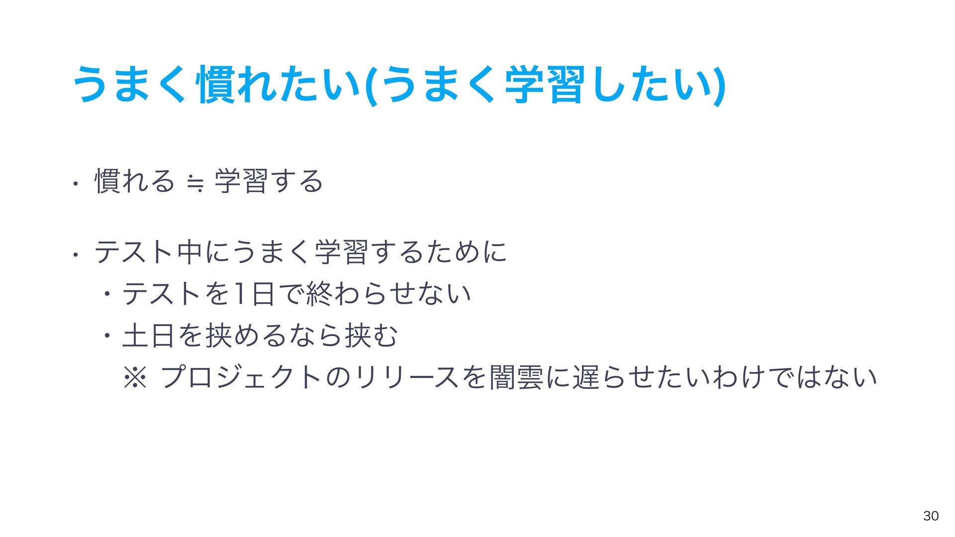 ͏·͘׳Ε͍ͨ ͏·ֶ͘श͍ͨ͠ w ׳ΕΔ㲈ֶश͢Δ w ςετதʹ͏·ֶ͘श͢ΔͨΊʹ ɾςετΛͰऴΘΒͤͳ͍ ɾΛڬΊΔͳΒڬΉ ɹ˞ϓϩδΣΫτͷϦϦʔεΛҋӢʹΒ͍ͤͨΘ͚Ͱͳ͍
