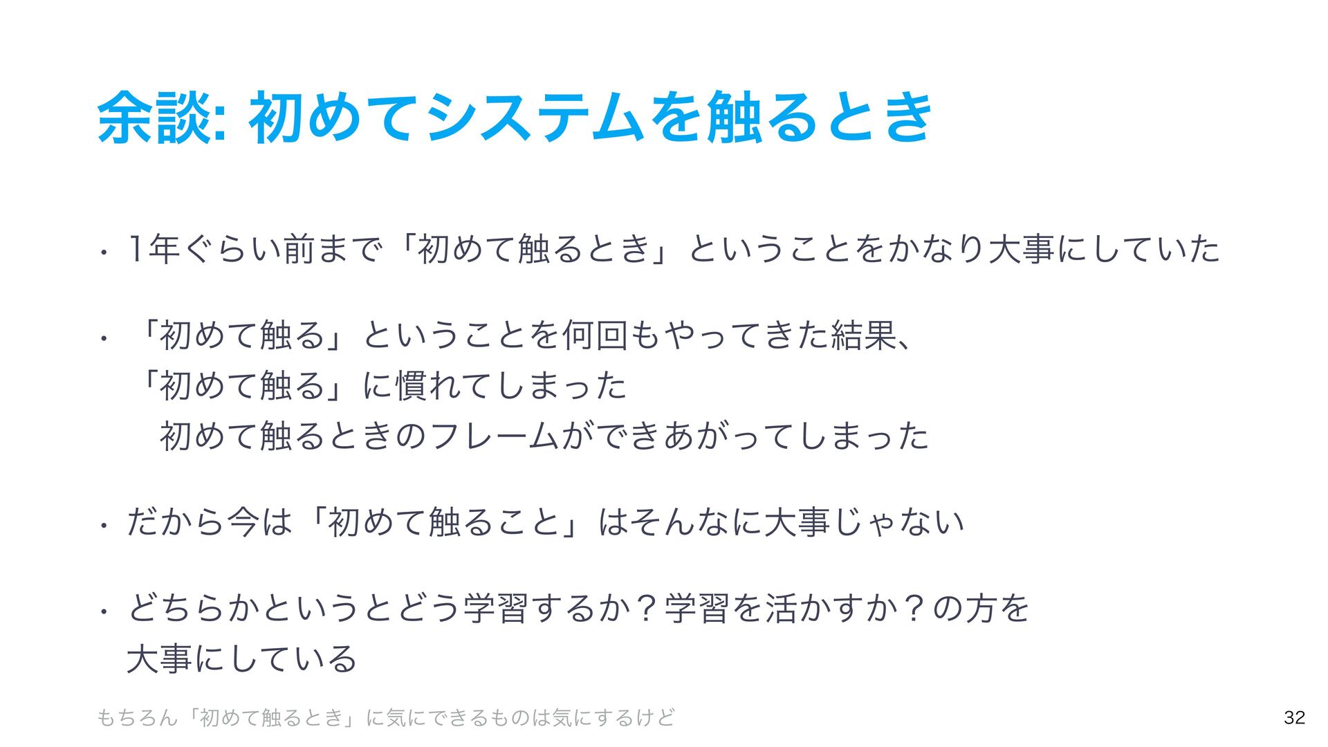 ༨ஊॳΊͯγεςϜΛ৮Δͱ͖ w ͙Β͍લ·ͰʮॳΊͯ৮Δͱ͖ʯͱ͍͏͜ͱΛ͔ͳΓେࣄʹ͍ͯͨ͠ w ʮॳΊͯ৮Δʯͱ͍͏͜ͱΛԿճ͖ͬͯͨ݁Ռɺ ʮॳΊͯ৮Δʯʹ׳Εͯ͠·ͬͨ ɹॳΊͯ৮Δͱ͖ͷϑϨʔϜ͕Ͱ͖͕͋ͬͯ͠·ͬͨ w ͔ͩΒࠓʮॳΊͯ৮Δ͜ͱʯͦΜͳʹେࣄ͡Όͳ͍ w