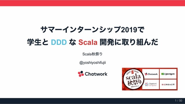 BookmarkStatus.Active, messageId = command.messageId, userAccountId = command.userAccountId, createdAt = now ) val result = for { message <- messageRepository.findById(command.messageId).recoverWith { case e: AggregateNotFoundException => Future.failed(new MessageNotFoundException(e)) } thread <- threadRepository.findById(message.breachEncapsulationOfThreadId).recoverWith { case e: AggregateNotFoundException => Future.failed(new ThreadNotFoundException(e)) } _ <- Future { if (!thread.hasMember(command.userAccountId)) throw new AddBookmarkForbiddenException("You are not a m } _ <- bookmarkRepository.store(bookmark) } yield { AddBookmarkSuccess(bookmarkId) } サマーインターンシップ2019 で学生とDDD なScala 開発に取り組んだ Scala 秋祭り 40 / 50