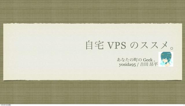 ࣗ VPS ͷεεϝɻ ͋ͳͨͷொͷ Geek ɻ yosida95 / ٢ా ߉ฏ
