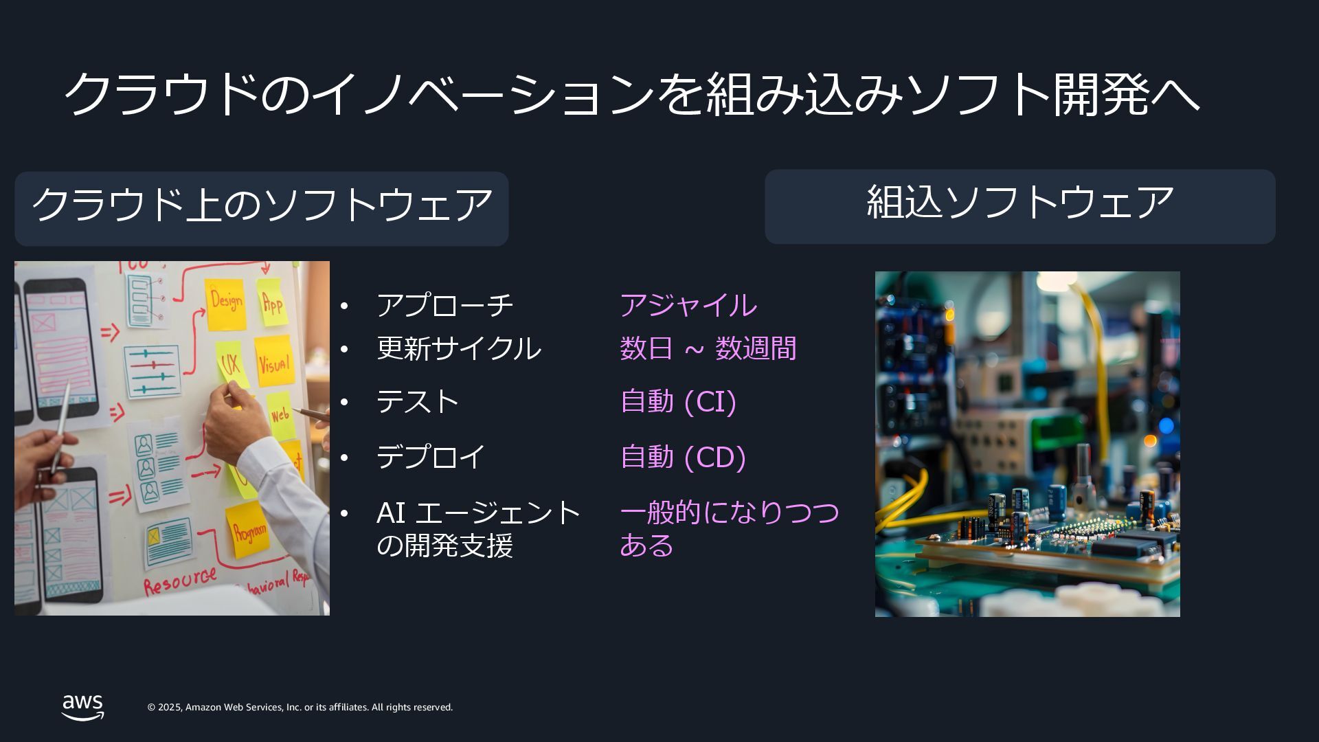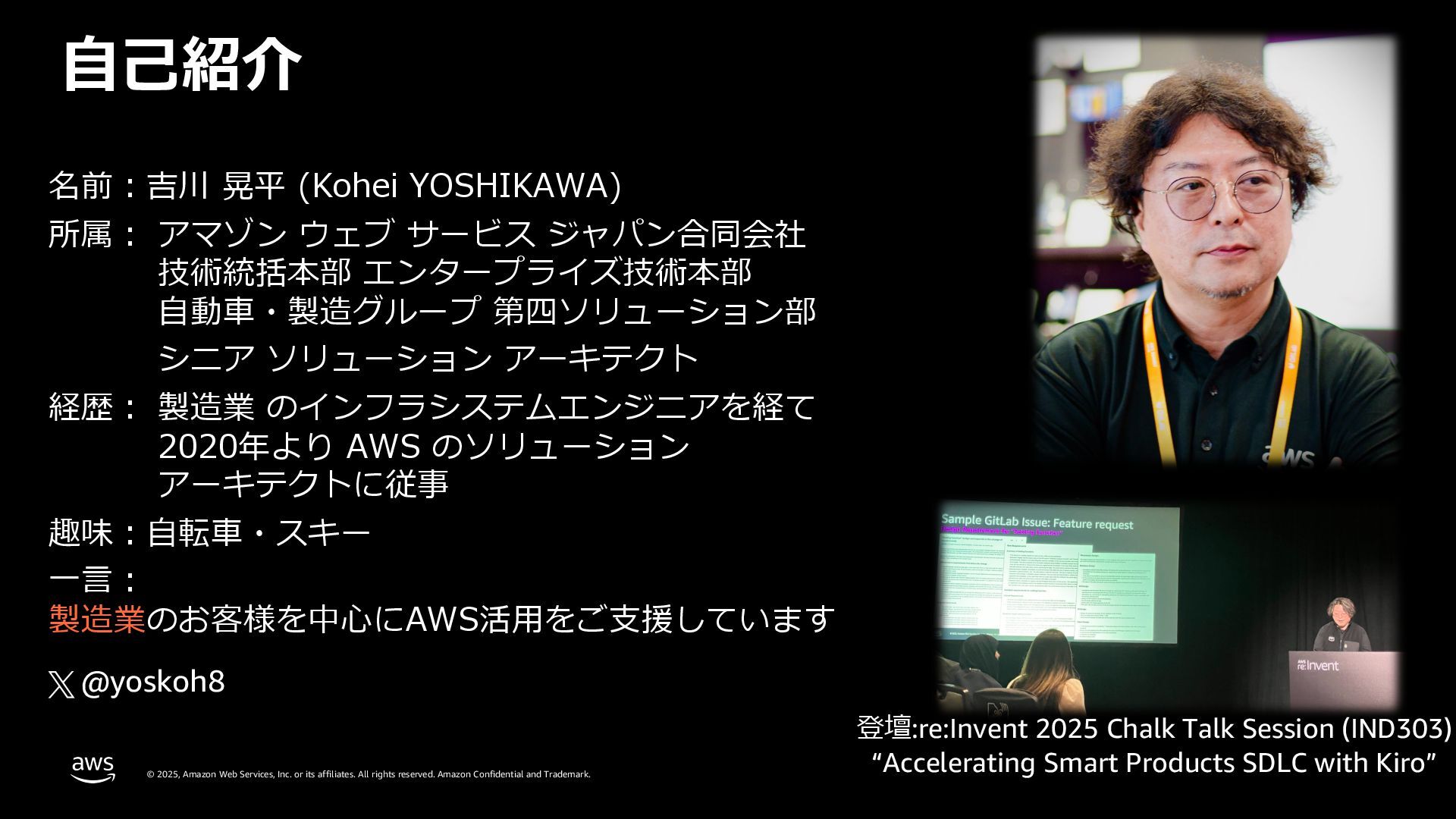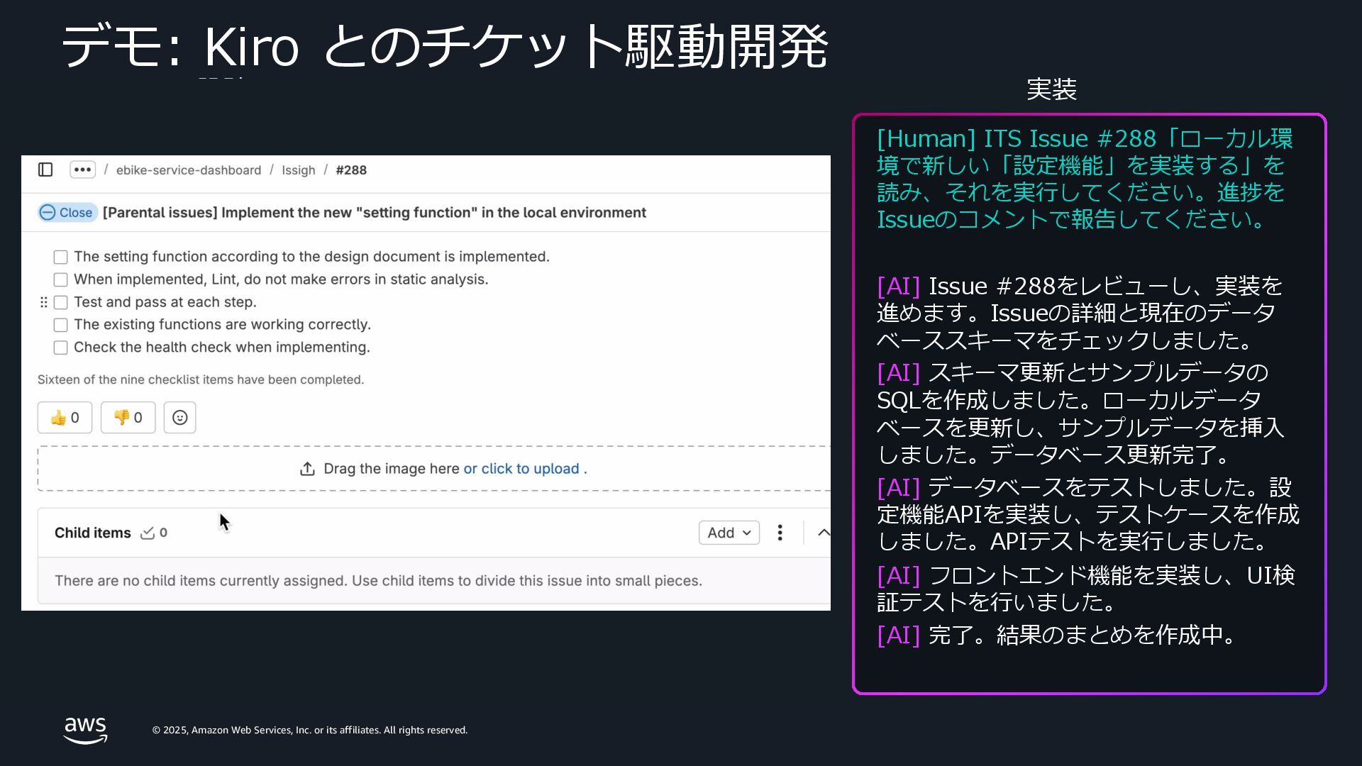 rights reserved. Amazon Confidential and Trademark. 組込製品のソフトウェア開発ライフサイクル全般で Kiro (⽣成 AI 開発エージェント) による開発加速を体験 28 Accelerating Smart Products SDLC with AI Agent Workshop Workshop Studio URL: https://catalog.workshop s.aws/smart-products-ai- sdlc