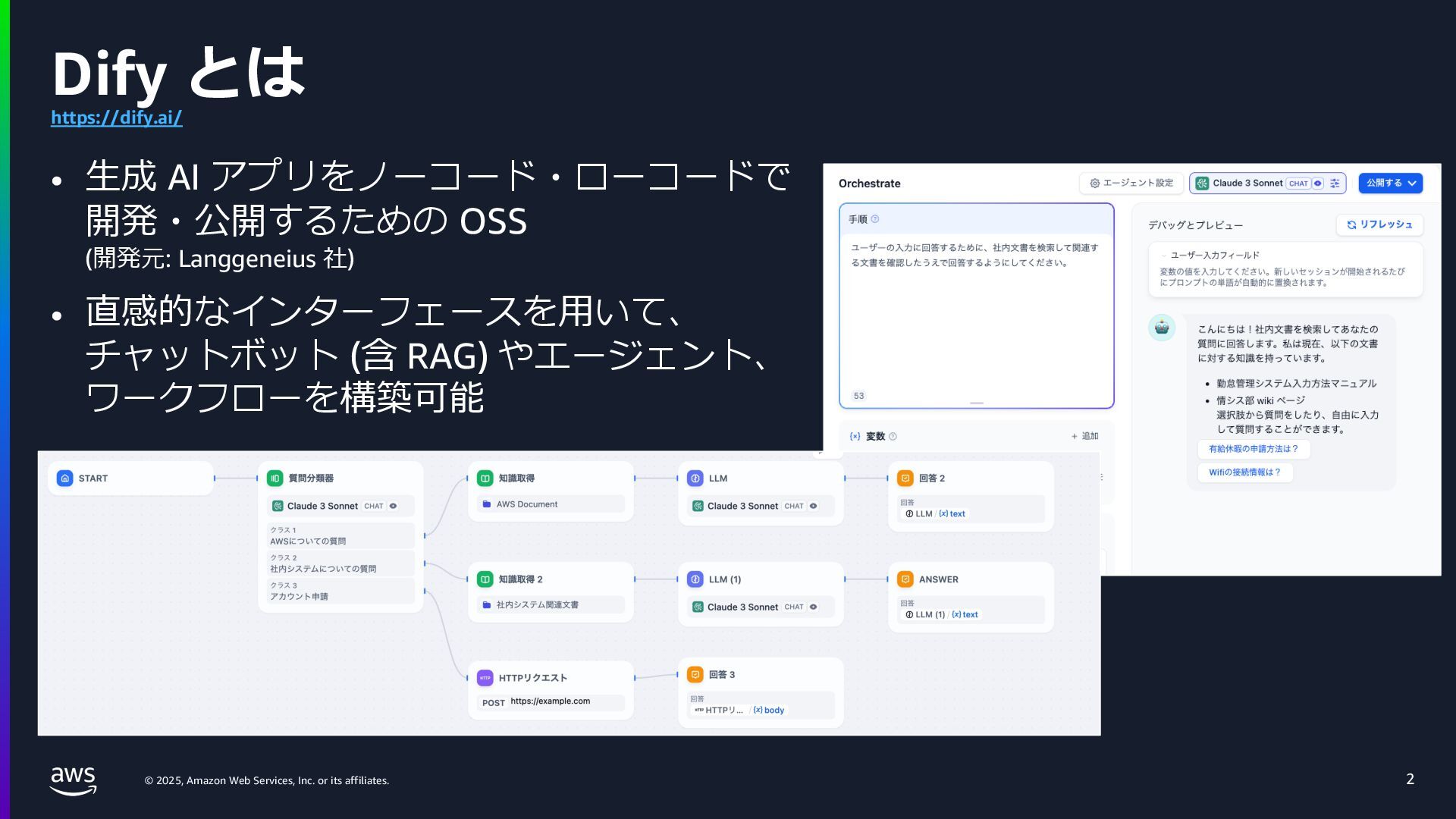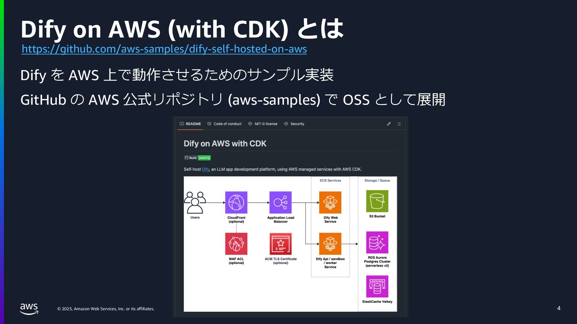 4. © 2025, Amazon Web Services, Inc. or its affiliates. Dify