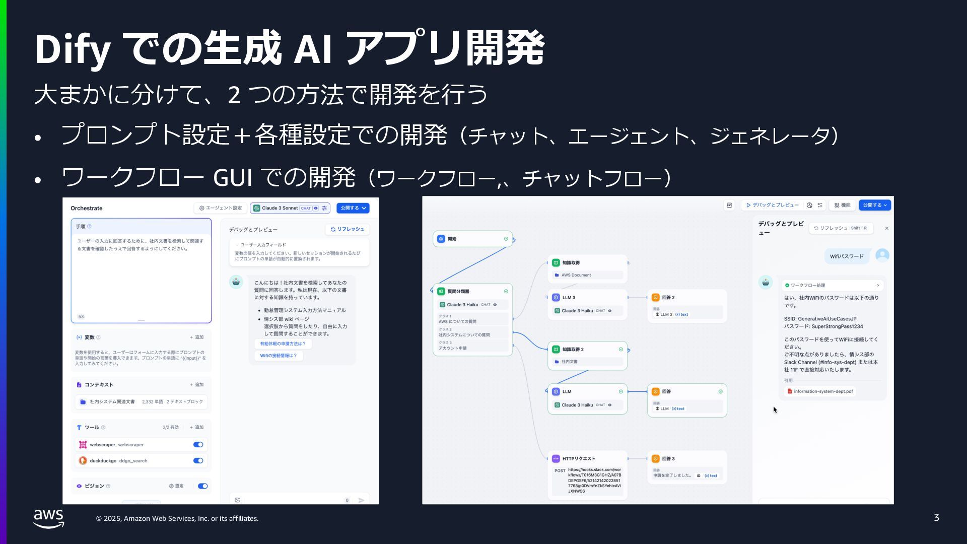 22. © 2025, Amazon Web Services, Inc. or its affiliates. 参考︓Dify