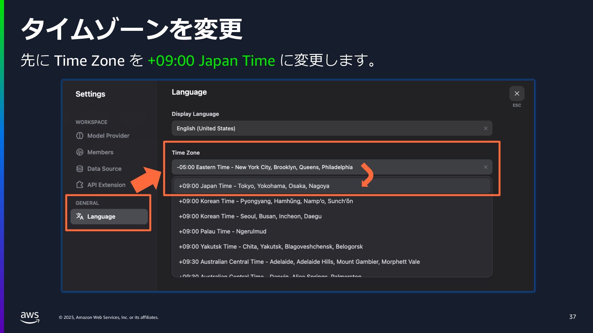 27. © 2025, Amazon Web Services, Inc. or its affiliates. タイムゾーンを変更