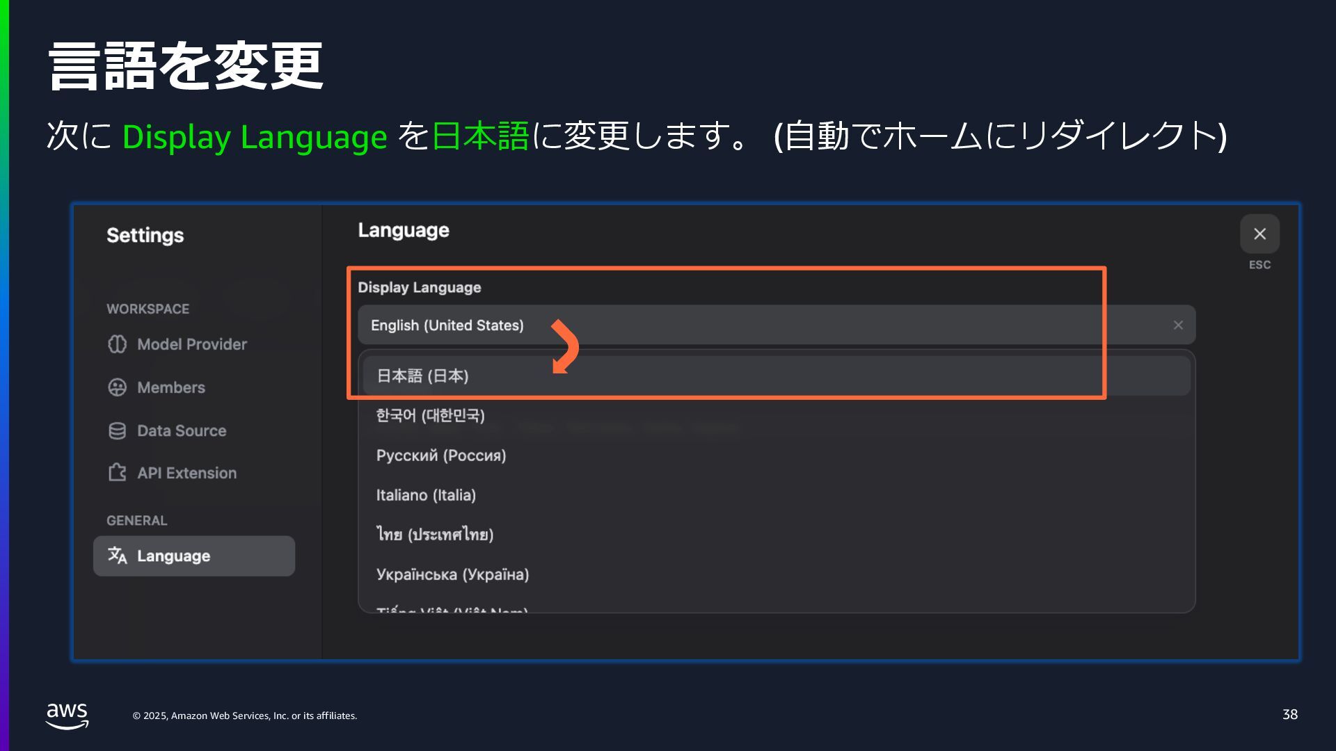 28. © 2025, Amazon Web Services, Inc. or its affiliates. ⾔語を変更