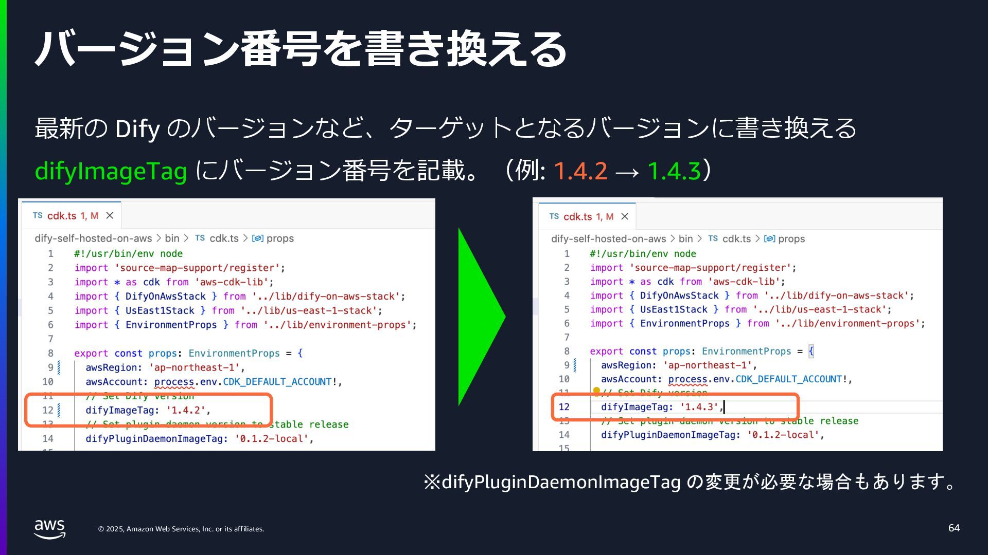 44. © 2025, Amazon Web Services, Inc. or its affiliates. バージョン番号を書き換える