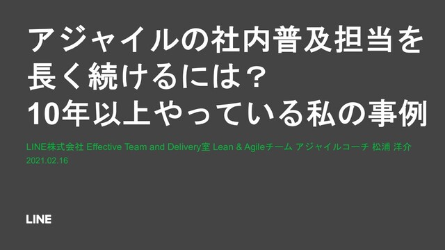 アジャイルの社内普及担当を 長く続けるには? 10年以上やっている私の事例 LINE株式会社 Effective Team and Delivery室 Lean &