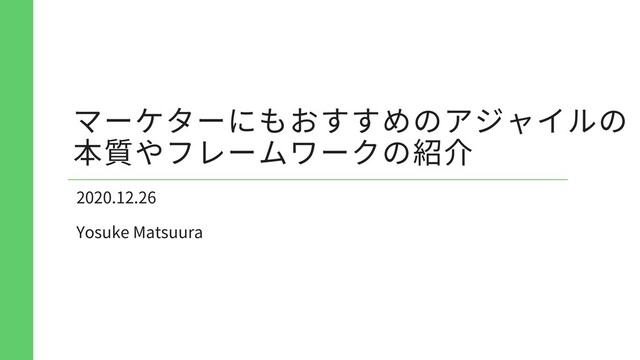 #ウェブ解析25時 の登壇で利用した松浦洋介の「マーケターにもおすすめのアジャイルの本質やフレームワークの紹介」の資料です。