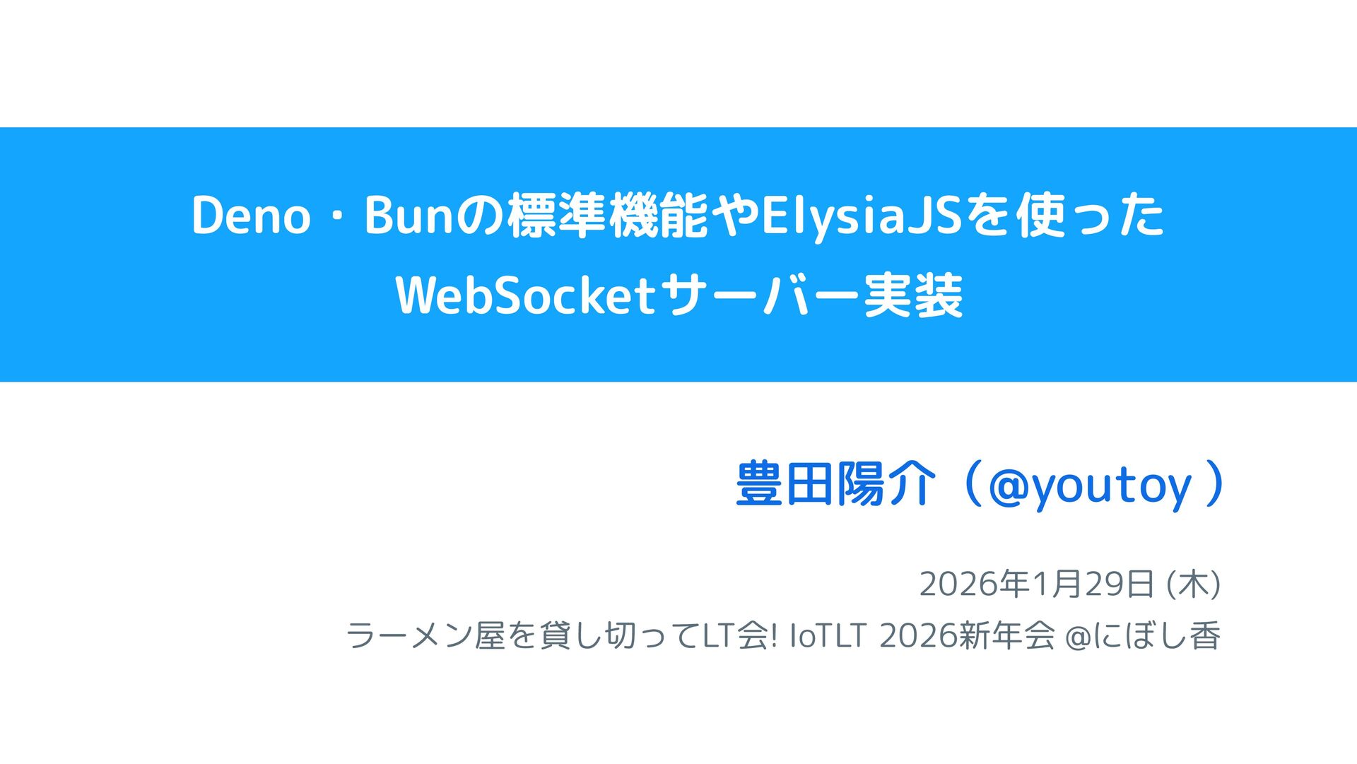 Deno・Bunの標準機能やElysiaJSを使ったWebSocketサーバー実装 / ラーメン屋を貸し切ってLT会! IoTLT 2026新年会
