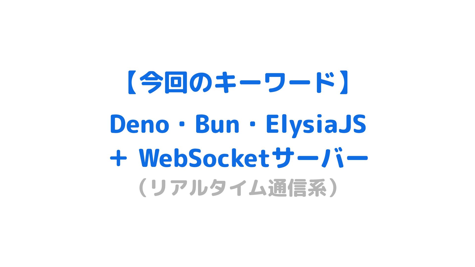 【今回のキーワード】 Deno・Bun・ElysiaJS + WebSocketサーバー (リアルタイム通信系)