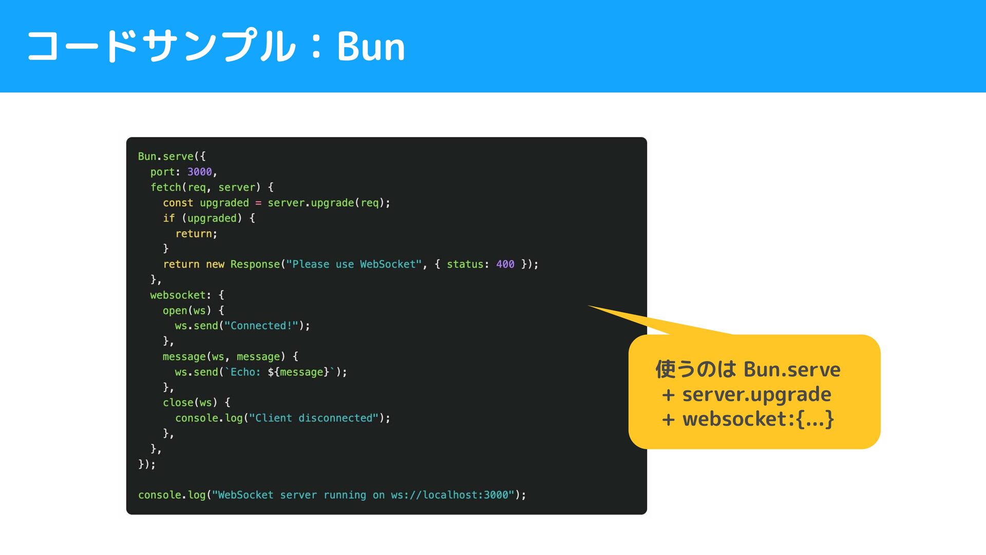 Deno・Bunの標準機能やElysiaJSを使ったWebSocketサーバー実装 / ラーメ...