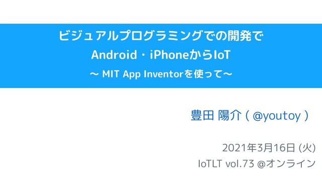 ビジュアルプログラミングでの開発で Android・iPhoneからIoT 〜 MIT App Inventorを使って〜 2021年3月16日 (火) IoTLT vol.73