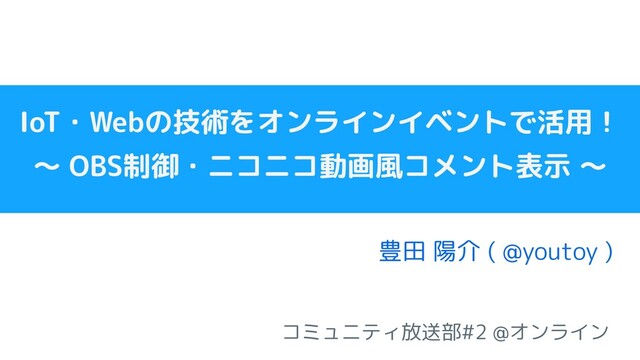 IoT・Webの技術をオンラインイベントで活用! 〜 OBS制御・ニコニコ動画風コメント表示 〜 豊田 陽介 ( @youtoy ) コミュニティ放送部#2