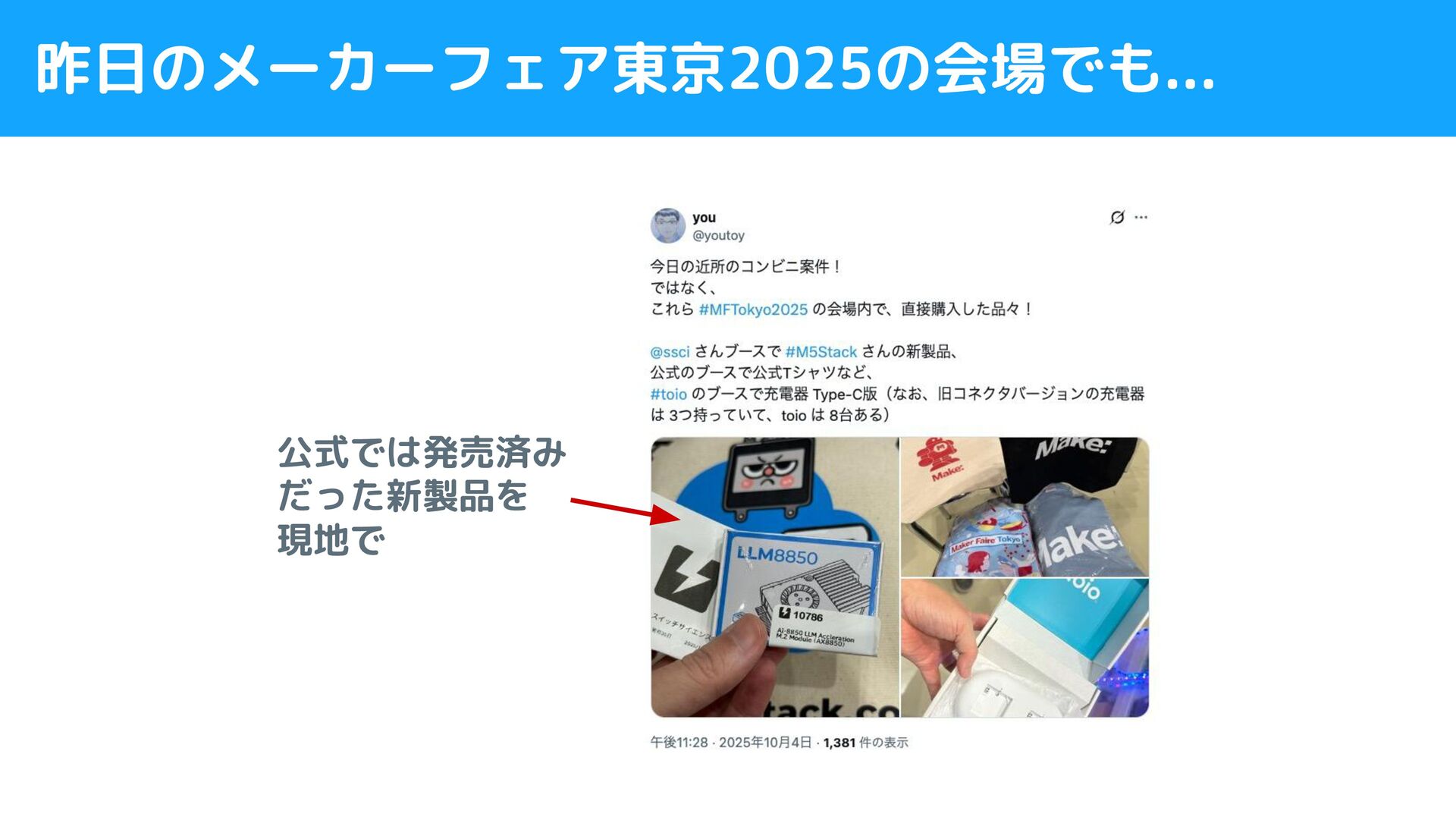 昨日のメーカーフェア東京2025の会場でも... 公式では発売済み だった新製品を 現地で