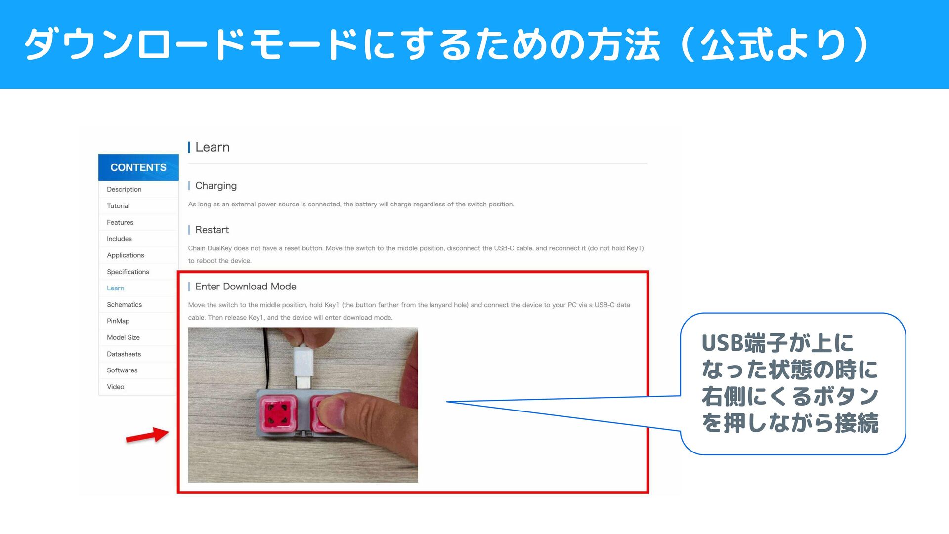 ダウンロードモードにするための方法(公式より) USB端子が上に なった状態の時に 右側にくるボタン を押しながら接続