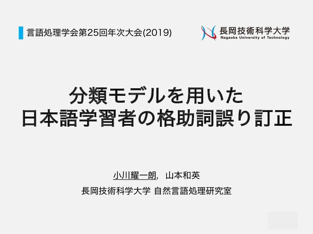 言語処理学会第25回年次大会(NLP2019) テーマセッション: 言語教育と言語処理の接点 での発表スライド 原稿: https://www.anlp.jp/proceedings/annual_meeting/2019/pdf_dir/C4-8.pdf