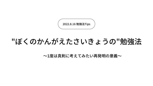 〜1度は真剣に考えてみたい再発明の意義〜 "ぼくのかんがえたさいきょうの"勉強法 2022.8.16 勉強法Tips