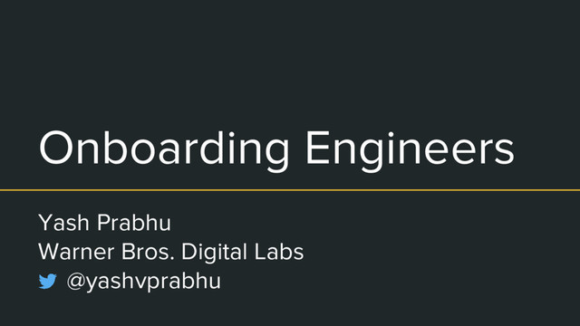 Onboarding Engineers Yash Prabhu Warner Bros. Digital Labs @yashvprabhu