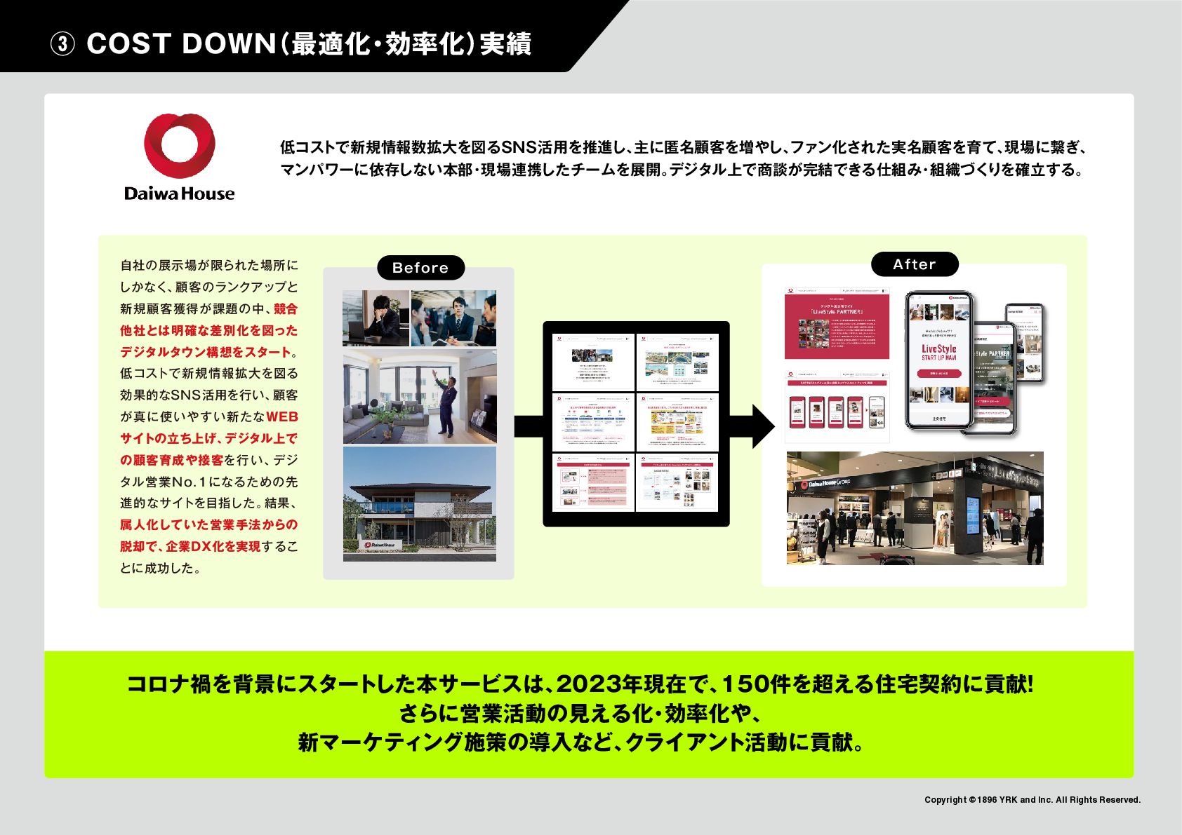 Inc. All Rights Reserved. ίϩφՒΛഎܠʹελʔτͨ͠ຊαʔϏε͸ɺ ೥ݱࡏͰɺ ݅Λ௒͑Δॅ୐ܖ໿ʹߩݙ ʂ ͞ΒʹӦۀ׆ಈͷݟ͑ΔԽ ɾ ޮ཰Խ΍ɺ ৽ϚʔέςΟϯάࢪࡦͷಋೖͳͲɺ ΫϥΠΞϯτ׆ಈʹߩݙɻ ௿ίετͰ৽ن৘ใ਺֦େΛਤΔ4/4׆༻Λਪਐ͠ɺ ओʹಗ໊ސ٬Λ૿΍͠ɺ ϑΝϯԽ͞Ε໊࣮ͨސ٬Λҭͯɺ ݱ৔ʹܨ͗ɺ Ϛϯύϫʔʹґଘ͠ͳ͍ຊ෦ ɾ ݱ৔࿈ܞͨ͠νʔϜΛల։ɻ σδλϧ্Ͱ঎ஊ͕׬݁Ͱ͖Δ࢓૊Έ ɾ ૊৫ͮ͘ΓΛཱ֬͢Δɻ ࣗࣾͷలࣔ৔͕ݶΒΕͨ৔ॴʹ ͔͠ͳ͘ɺ ސ٬ͷϥϯΫΞοϓͱ ৽نސ٬֫ಘ͕՝୊ͷதɺ ڝ߹ ଞࣾͱ͸໌֬ͳࠩผԽΛਤͬͨ σδλϧλ΢ϯߏ૝Λελʔτɻ ௿ίετͰ৽ن৘ใ֦େΛਤΔ ޮՌతͳ4/4׆༻Λߦ͍ɺ ސ٬ ͕ਅʹ࢖͍΍͍͢৽ͨͳ8&# αΠτͷ্ཱͪ͛ɺ σδλϧ্Ͱ ͷސ٬ҭ੒΍઀٬Λߦ͍ɺ σδ λϧӦۀ/PʹͳΔͨΊͷઌ ਐతͳαΠτΛ໨ࢦͨ͠ɻ ݁Ռɺ ଐਓԽ͍ͯͨ͠Ӧۀख๏͔Βͷ ୤٫Ͱɺ اۀ%9ԽΛ࣮ݱ͢Δ͜ ͱʹ੒ޭͨ͠ɻ #FGPSF "GUFS