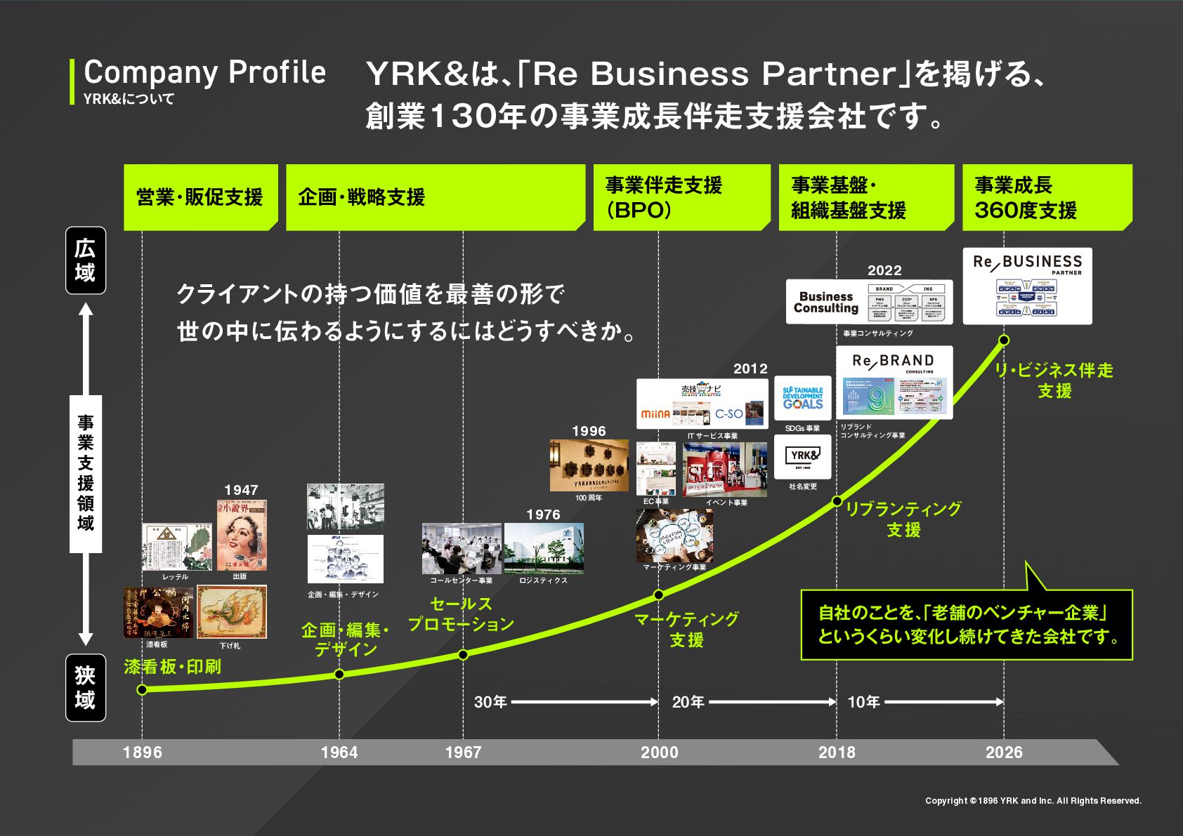 All Rights Reserved. :3,͸ɺ ʮ3F#VTJOFTT1BSUOFSʯ Λܝ͛Δɺ ૑ۀ೥ͷࣄۀ੒௕൐૸ࢧԉձࣾͰ͢ɻ ΫϥΠΞϯ τͷ࣋ͭՁ஋Λ࠷ળͷܗͰ ੈͷதʹ఻ΘΔΑ ͏ʹ͢Δʹ͸Ͳ ͏ ͢΂͖͔ɻ ࣄ ۀ ࢧ ԉ ྖ Ҭ ࣫؃൘ ɾ ҹ࡮ اը ɾ ฤू ɾ σβΠϯ ϚʔέςΟ ϯά ࢧԉ ೥ ϦϒϥϯςΟ ϯά ࢧԉ Ϧ ɾ Ϗδωε൐૸ ࢧԉ ηʔϧε ϓϩϞʔγϣ ϯ 1896 1947 1964 1967 2000 2018 2026 ࣫؃൘ Լ͛ࡳ ग़൛ Ϩοςϧ اըɾฤूɾσβΠϯ 1976 1996 ϩδεςΟΫε  प೥ ίʔϧηϯλʔࣄۀ 2012 2022 ϚʔέςΟϯάࣄۀ *5αʔϏεࣄۀ ࣄۀίϯαϧςΟϯά &$ࣄۀ Πϕϯτࣄۀ Ϧϒϥϯυ ίϯαϧςΟϯάࣄۀ 4%(T ࣄۀ ໊ࣾมߋ ೥ ೥ Ӧۀ ɾ ൢଅࢧԉ اը ɾ ઓུࢧԉ ࣄۀ൐૸ࢧԉ ʢ#10ʣ ࣄۀج൫ ɾ ૊৫ج൫ࢧԉ ࣄۀ੒௕ ౓ࢧԉ ޿ Ҭ ڱ Ҭ ࣗࣾͷ͜ͱΛɺ ʮ࿝ฮͷϕϯνϟʔاۀʯ ͱ͍͏͘ Β͍มԽ͠ଓ͚͖ͯͨձࣾͰ͢ɻ