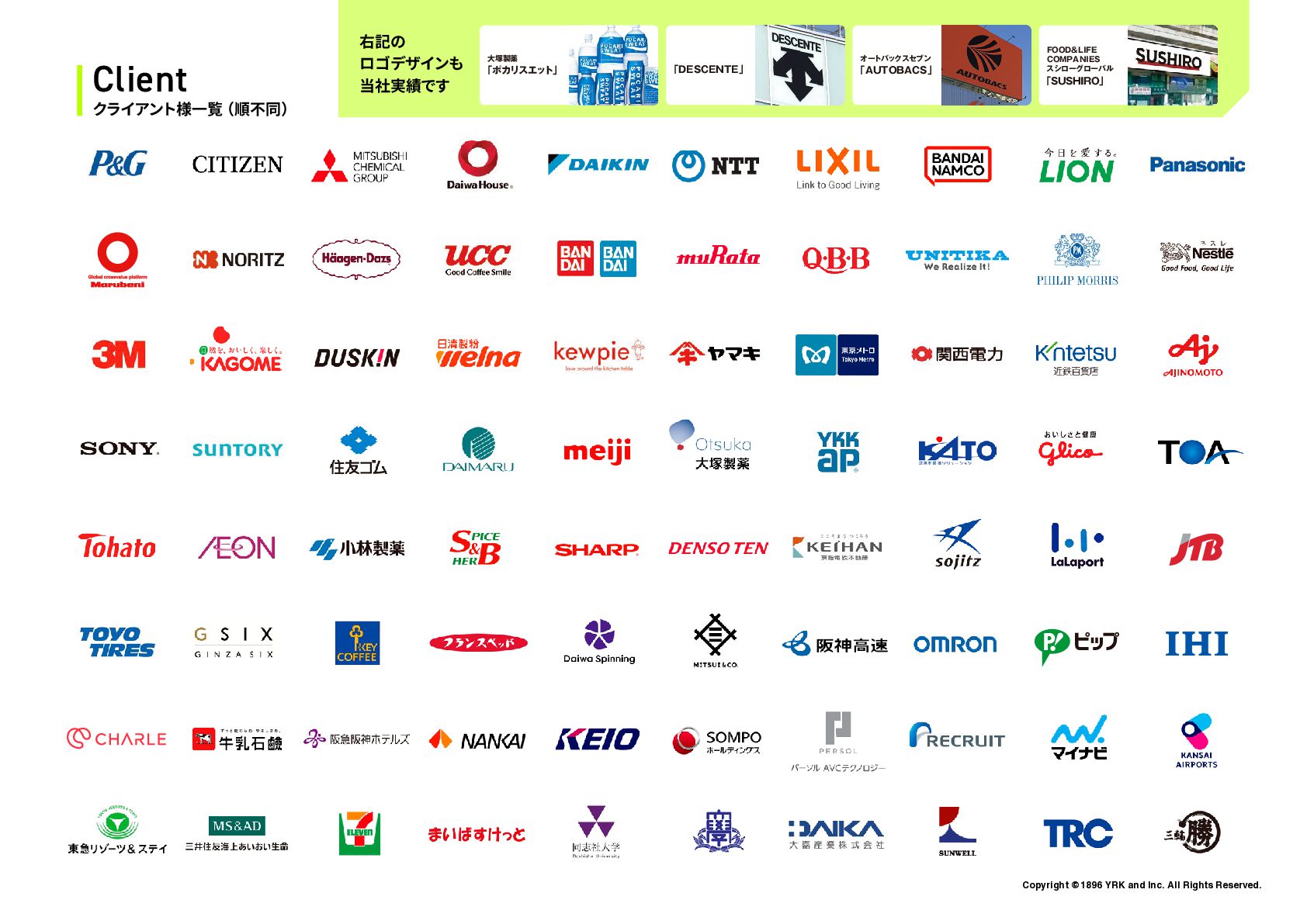 クライアント様一覧 (順不同) 右記の ロゴデザインも 当社実績です େ௩੡ༀ ʮϙΧϦεΤο τʯ ʮ%&4$&/5&ʯ ΦʔτόοΫεηϒϯ ʮ"650#"$4ʯ '00%-*'& $0.1"/*&4 εγϩʔάϩʔόϧ ʮ464)*30ʯ