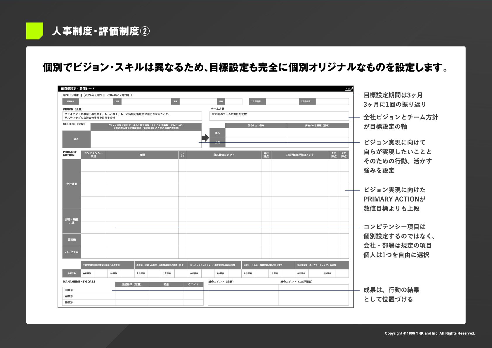 ɾ εΩϧ͸ҟͳΔͨΊɺ ໨ඪઃఆ΋׬શʹݸผΦϦδφϧͳ΋ͷΛઃఆ͠·͢ɻ ਓࣄ੍౓ ɾ ධՁ੍౓ᶄ VISION MISSION MANAGEMENT GOALS PRIMARY ACTION