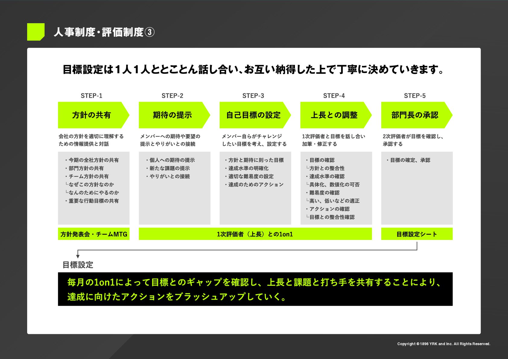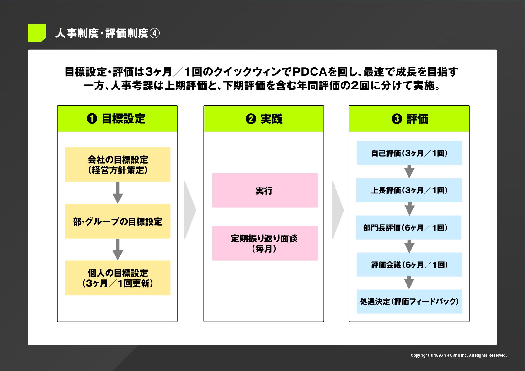 ɾ ධՁ͸ϲ݄ʗճͷΫΠοΫ΢ΟϯͰ1%$"Λճ͠ɺ ࠷଎Ͱ੒௕Λ໨ࢦ͢ Ұํɺ ਓࣄߟ՝͸্ظධՁͱɺ ԼظධՁΛؚΉ೥ؒධՁͷճʹ෼͚࣮ͯࢪɻ ਓࣄ੍౓ ɾ ධՁ੍౓ᶆ ⁞໨ඪઃఆ  ࣮ફ ⁠ධՁ ձࣾͷ໨ඪઃఆ ʢܦӦํ਑ࡦఆʣ ෦ ɾ άϧʔϓͷ໨ඪઃఆ ݸਓͷ໨ඪઃఆ ʢϲ݄ʗճߋ৽ʣ ࣮ߦ ఆظৼΓฦΓ໘ஊ ʢຖ݄ʣ ࣗݾධՁ ʢϲ݄ʗճʣ ্௕ධՁ ʢϲ݄ʗճʣ ෦໳௕ධՁ ʢϲ݄ʗճʣ ධՁձٞ ʢϲ݄ʗճʣ ॲ۰ܾఆ ʢධՁϑΟʔυόοΫʣ