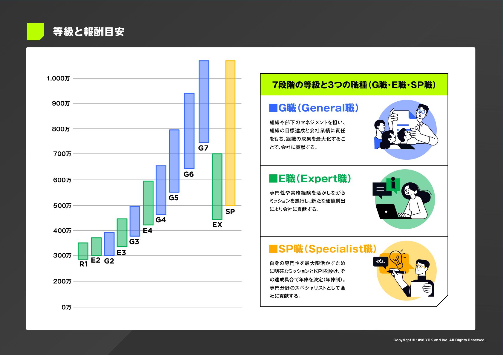 ສ ສ ສ ສ ສ ສ ສ  ສ ສ ສ R1 E2 G2 E3 G3 E4 G4 G5 G6 G7 EX SP ஈ֊ͷ౳ڃͱͭͷ৬छ ʢ(৬ ɾ &৬ ɾ 41৬ʣ ˙(৬ ʢ(FOFSBM৬ʣ ˙&৬ ʢ&YQFSU৬ʣ ˙41৬ ʢ4QFDJBMJTU৬ʣ ૊৫΍෦ԼͷϚωδϝϯτΛ୲͍ɺ ૊৫ͷ໨ඪୡ੒ͱձࣾۀ੷ʹ੹೚ Λ΋ͪɺ ૊৫ͷ੒ՌΛ࠷େԽ͢Δ͜ ͱͰɺ ձࣾʹߩݙ͢Δɻ ઐ໳ੑ΍࣮຿ܦݧΛ׆͔͠ͳ͕Β ϛογϣϯΛ਱ߦ͠ɺ ৽ͨͳՁ஋૑ग़ ʹΑΓձࣾʹߩݙ͢Δɻ ࣗ਎ͷઐ໳ੑΛ࠷େݶ׆͔ͨ͢Ί ʹ໌֬ͳϛογϣϯͱ,1*Λઃ͚ɺ ͦ ͷୡ੒۩߹Ͱ೥เΛܾఆ ʢ೥เ੍ʣ ɻ ઐ໳෼໺ͷεϖγϟϦετͱͯ͠ձ ࣾʹߩݙ͢Δɻ