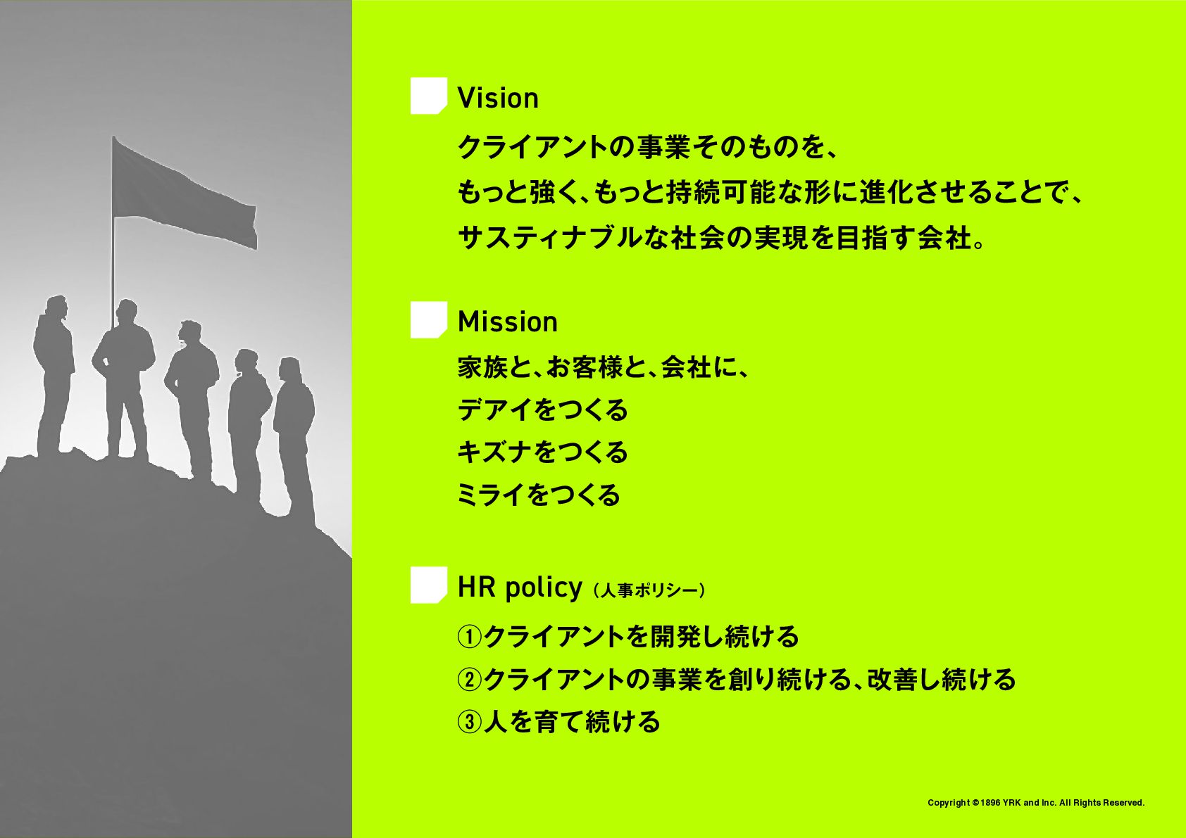 © 1896 YRK and Inc. All Rights Reserved. ΫϥΠΞϯτͷࣄۀͦͷ΋ͷΛɺ ΋ͬͱڧ͘ɺ ΋ͬͱ࣋ଓՄೳͳܗʹਐԽͤ͞Δ͜ͱͰɺ αεςΟφϒϧͳࣾձͷ࣮ݱΛ໨ࢦ͢ձࣾ ʠࣄۀ౰ࣄऀܕʡ ͷมֵ࣮૷ύʔτφʔ Vision