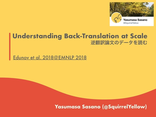 Understanding Back-Translation at Scale Yasumasa Sasano (@SquirrelYellow) ٯ༁จͷσʔλΛಡΉ Edunov et