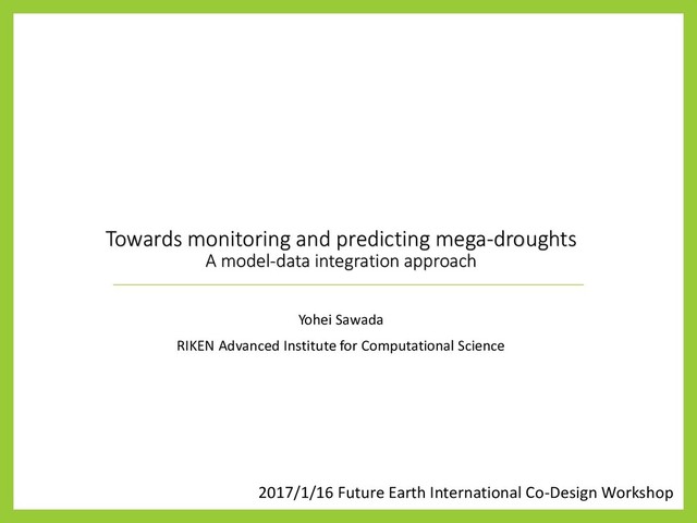 1. Towards monitoring and predicting mega-droughts A model-data integration approach Yohei