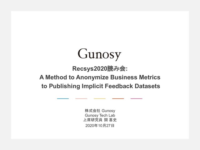Previously, researchers has not disclosed how to build the dataset and has not shared the knowledge with the community. We hope that our work will lead to more discussions on the process of building and publishing datasets and that many datasets will be published. This study is the first attempt to reduce business risks in publishing datasets https://github.com/gunosy/publishing-dataset-recsys20 our implementation and dataset avaiavle Feel free to contact me: [email protected]