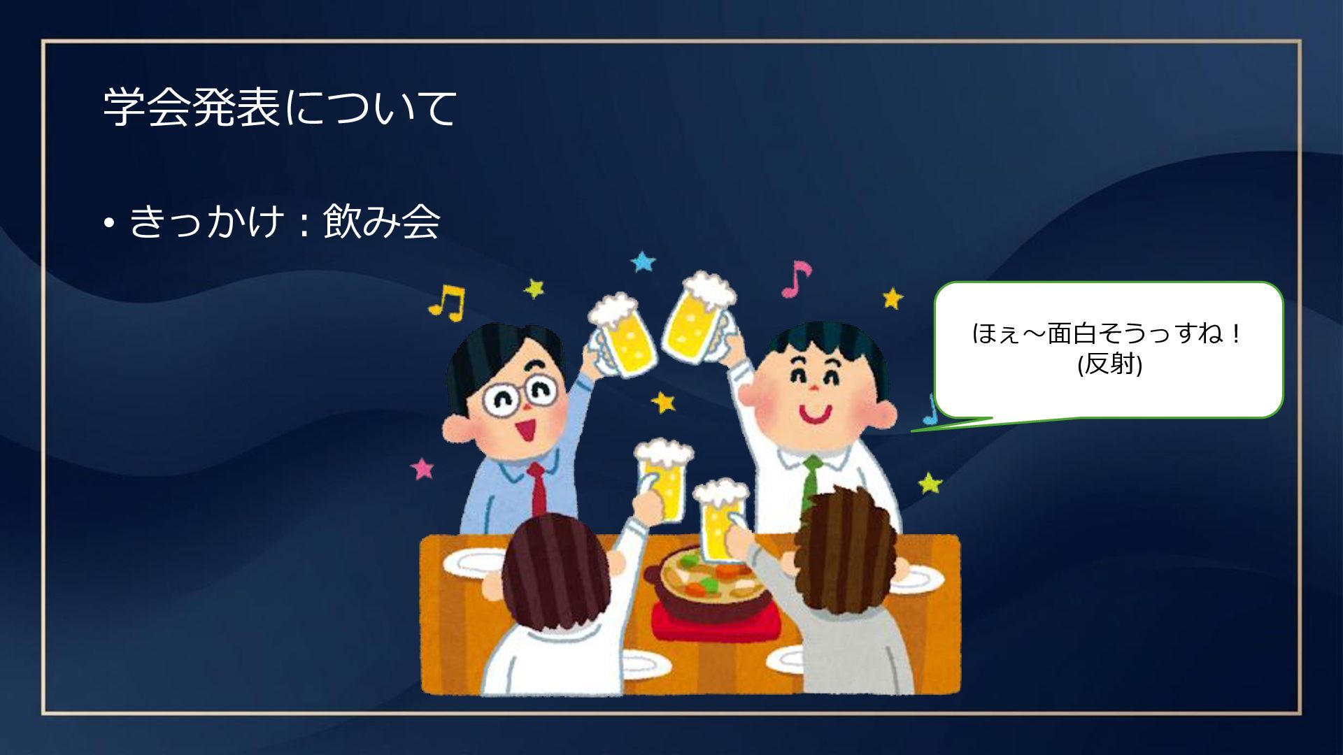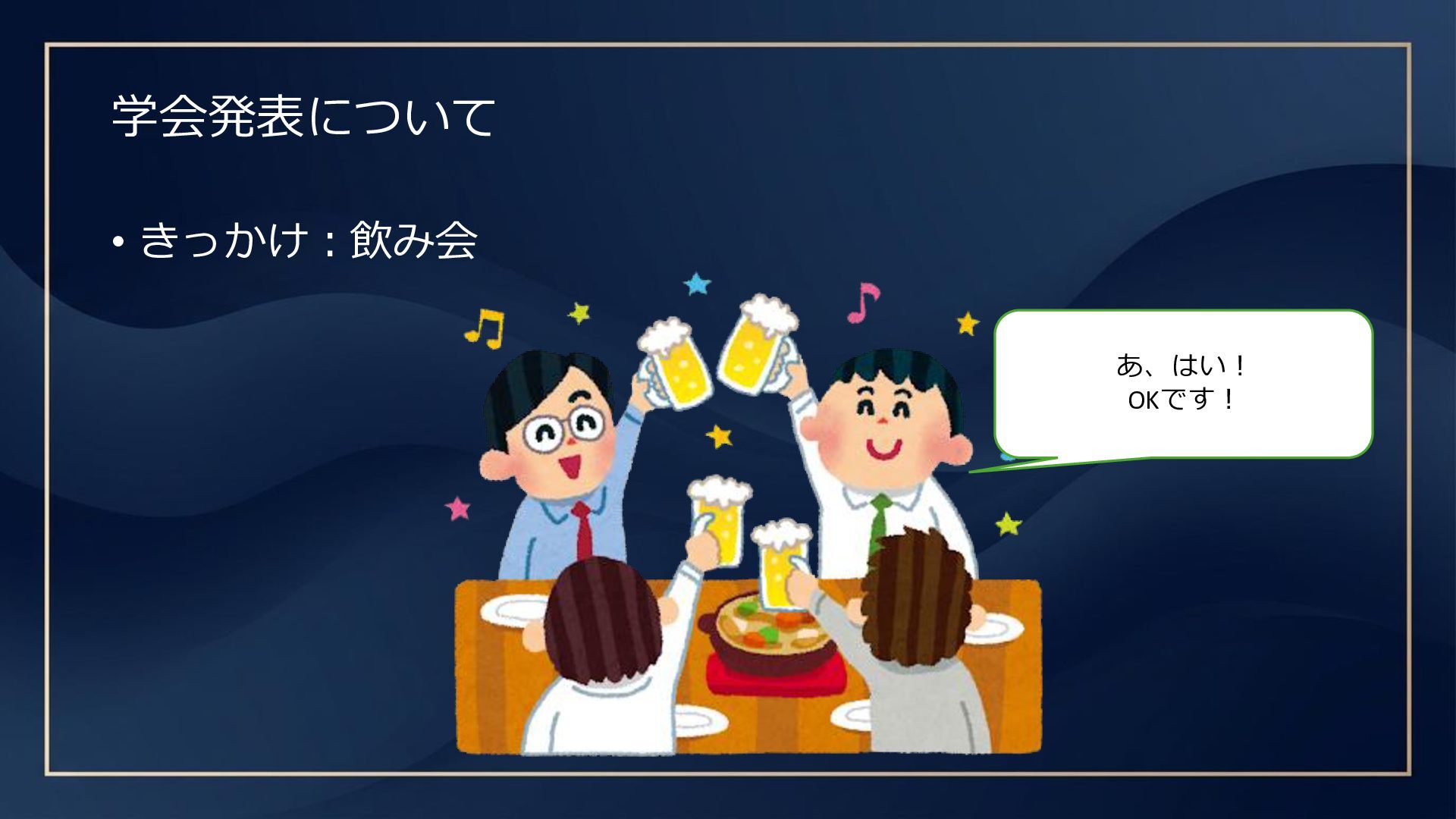 学会発表について • きっかけ:飲み会 あ、はい! OKです!