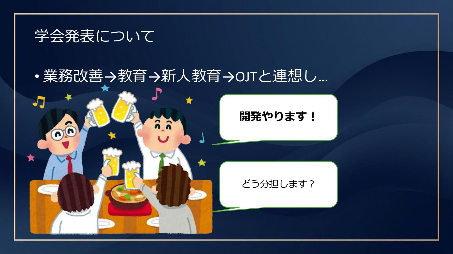 学会発表について • 業務改善→教育→新人教育→OJTと連想し…