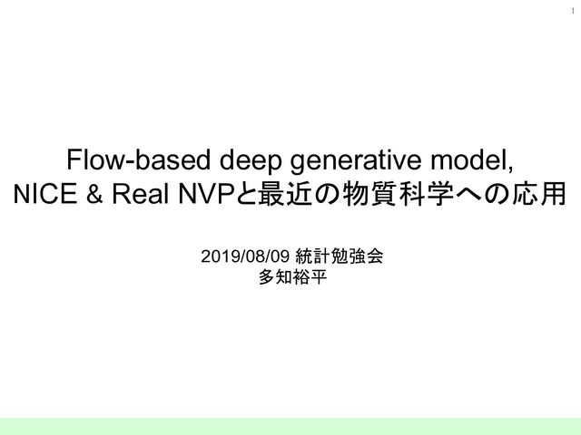 Generative Flow with Invertible 1×1 Convolutions. arXiv preprint, arXiv:1807.03039v2 (2018). [2] J. Regier, et al., Celeste: Variational inference for a generative model of astronomical images. arXiv preprint, arXiv:1506.01351 (2015). [3] A. van den Oord, et al. WaveNet: A Generative Model for Raw Audio. arXiv preprint, arXiv:1609.03499 (2016). [4] R. Gómez-Bombarelli, et al. Automatic chemical design using a data-driven continuous representation of molecules. arXiv preprint, arXiv:1610.02415x3 (2016). [5] https://www.youtube.com/watch?v=JrO5fSskISY [6] http://www.shakirm.com/slides/DeepGenModelsTutorial.pdf [7] L. Dinh, L. Sohl-Dickstein, and S. Bengio, Density estimation using Real NVP. arXiv preprint, arXiv:1605.08803 (2016). [8] L. Dinh, D. Krueger, and Y. Bengio, Nice: non-linear independent components estimation. arXiv preprint, arXiv:1410.8516 (2014). [9] F. Noe and H. Wu, Boltzmann Generators – Sampling Equilibrium States of Many- Body Systems with Deep Learning. arXiv preprint, arXiv:1812.01729 (2018). [10] M. S. Albergo, G. Kanwar, and P. E. Shanahan, Flow-based generative models for Markov chain Monte Carlo in lattice field theory. arXiv preprint, arXiv: 1904.12072v2 (2019).