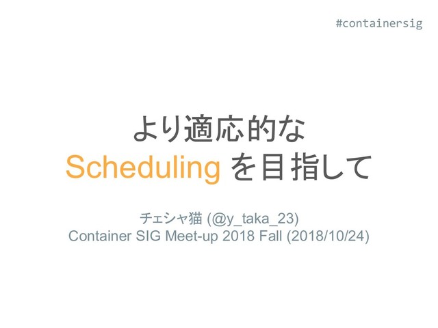 Container SIG 2018 Fall で使用したスライドです。Kubernetes の Scheduling は原則として Pod 作成時にしか行われないため、状況によっては非効率的な配置が行われる可能性があります。この問題を解決するため、クラスタの状況を Scheduling に反映させるという切り口から、Preemption、Vertical Pod Autoscaler、Descheduler の 3 種類の機能について簡単に解説しました。