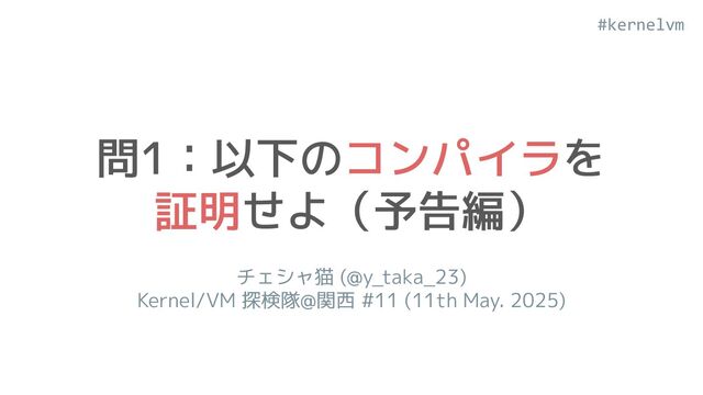 #kernelvm 問1:以下のコンパイラを 証明せよ(予告編) チェシャ猫 (@y_taka_23) Kernel/VM 探検隊@関西 #11 (11th May.