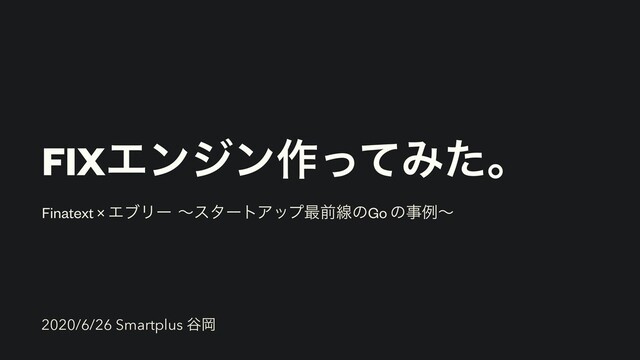 FIXΤϯδϯ࡞ͬͯΈͨɻ Finatext × ΤϒϦʔ ʙελʔτΞοϓ࠷લઢͷGo ͷࣄྫʙ 2020/6/26 Smartplus ୩Ԭ
