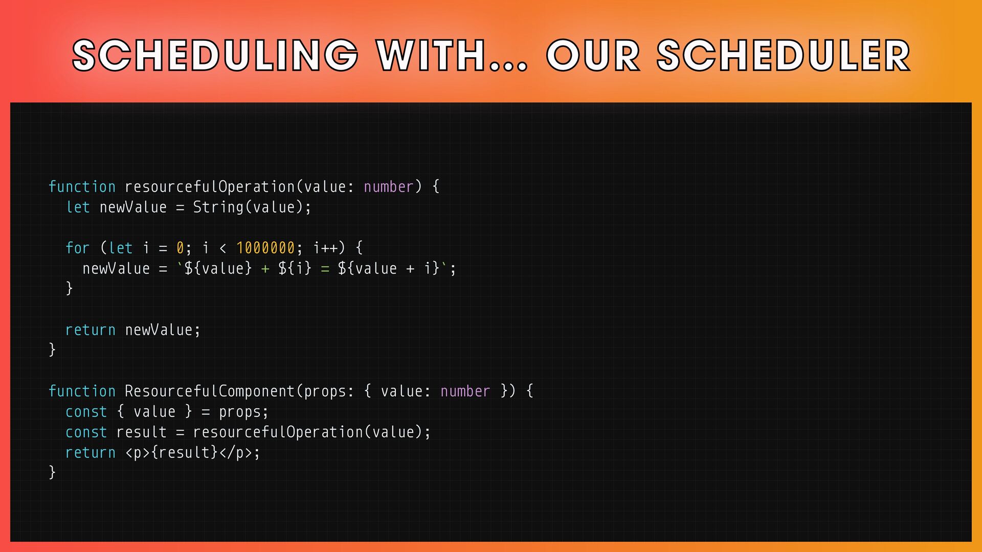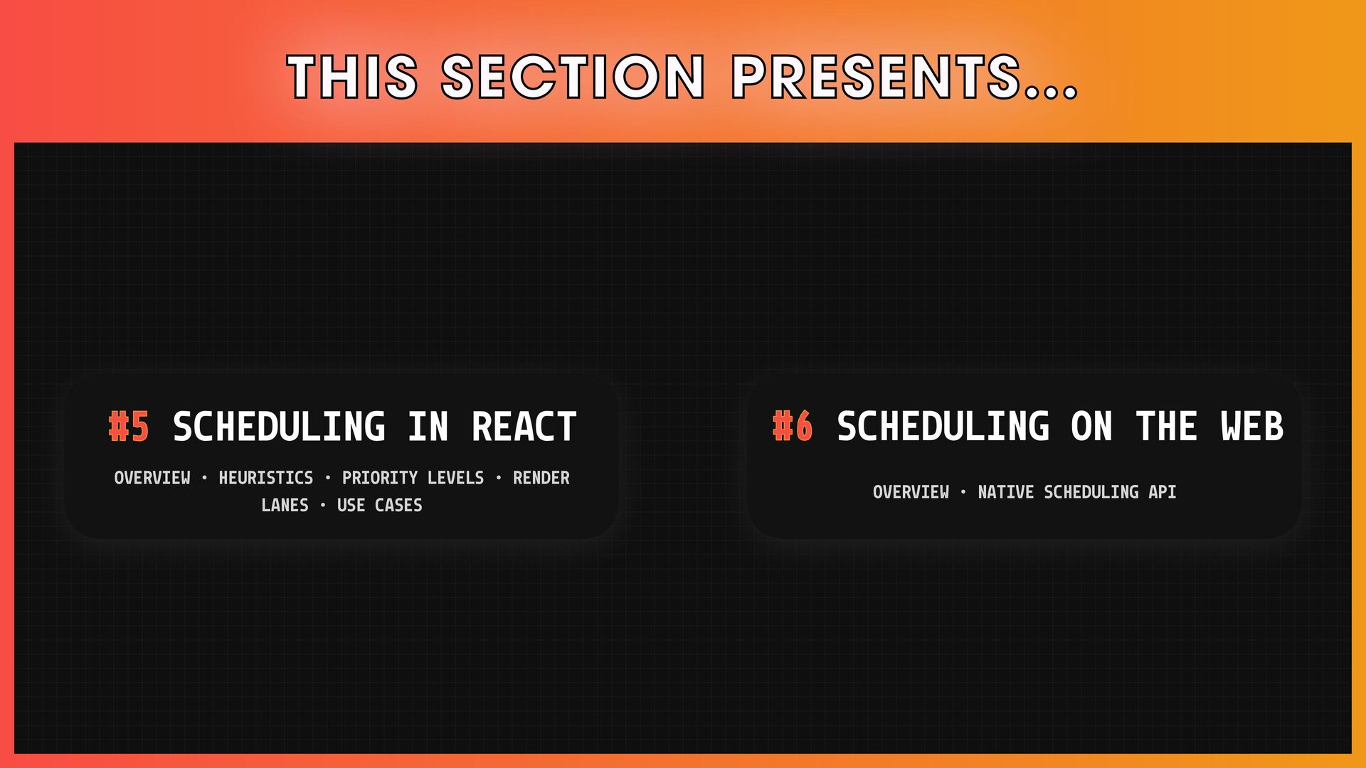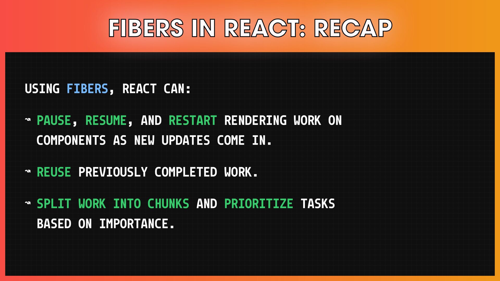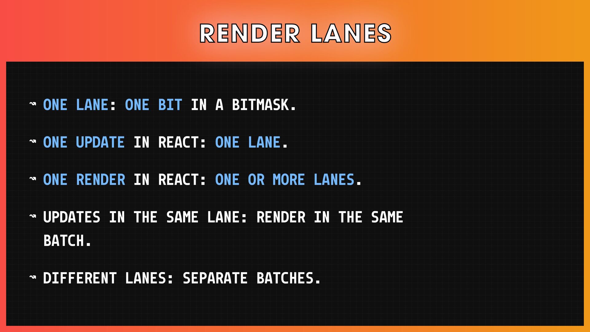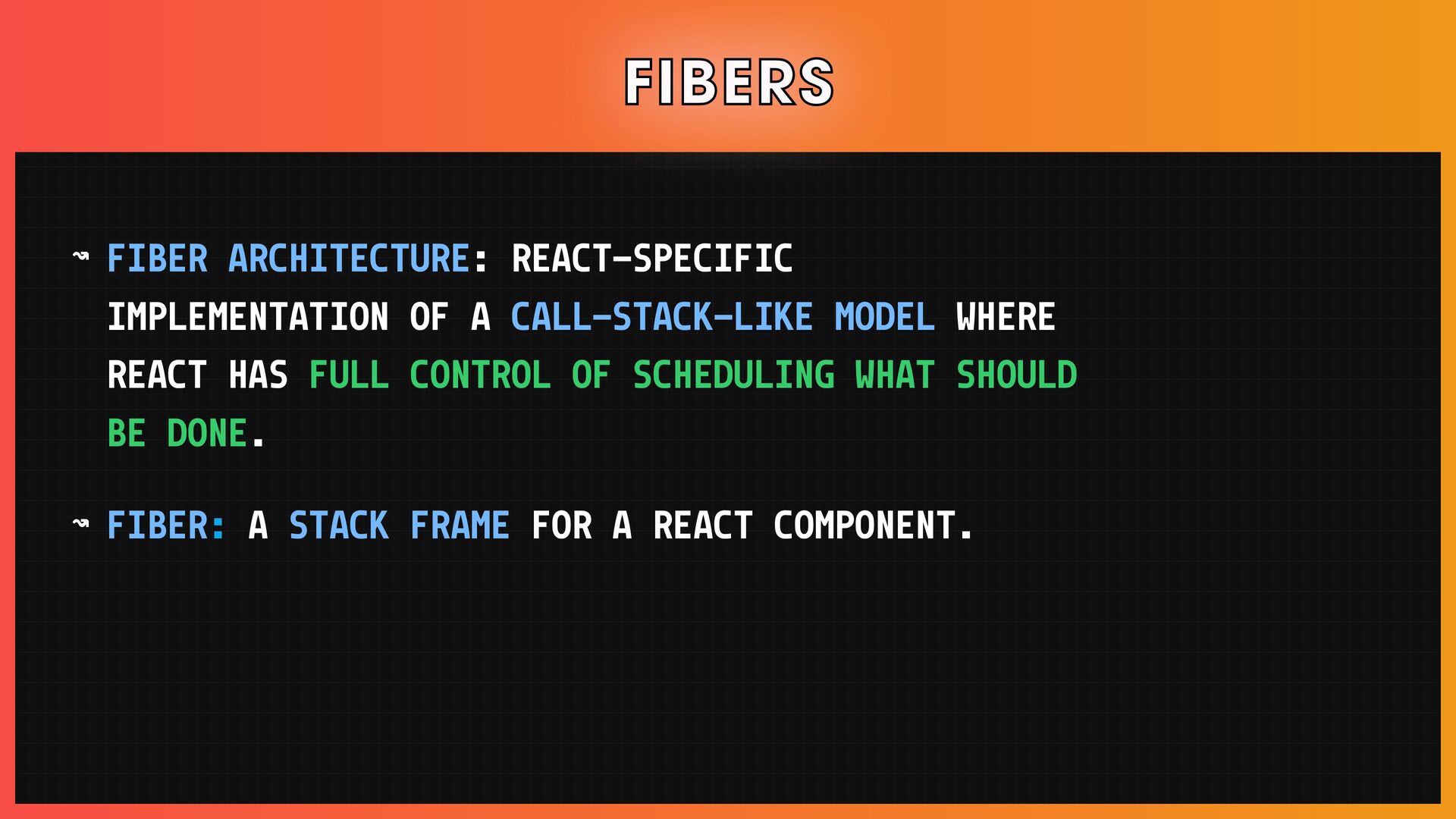 โ Scheduling, reconciliation, React Fiber, and concurrent React features.