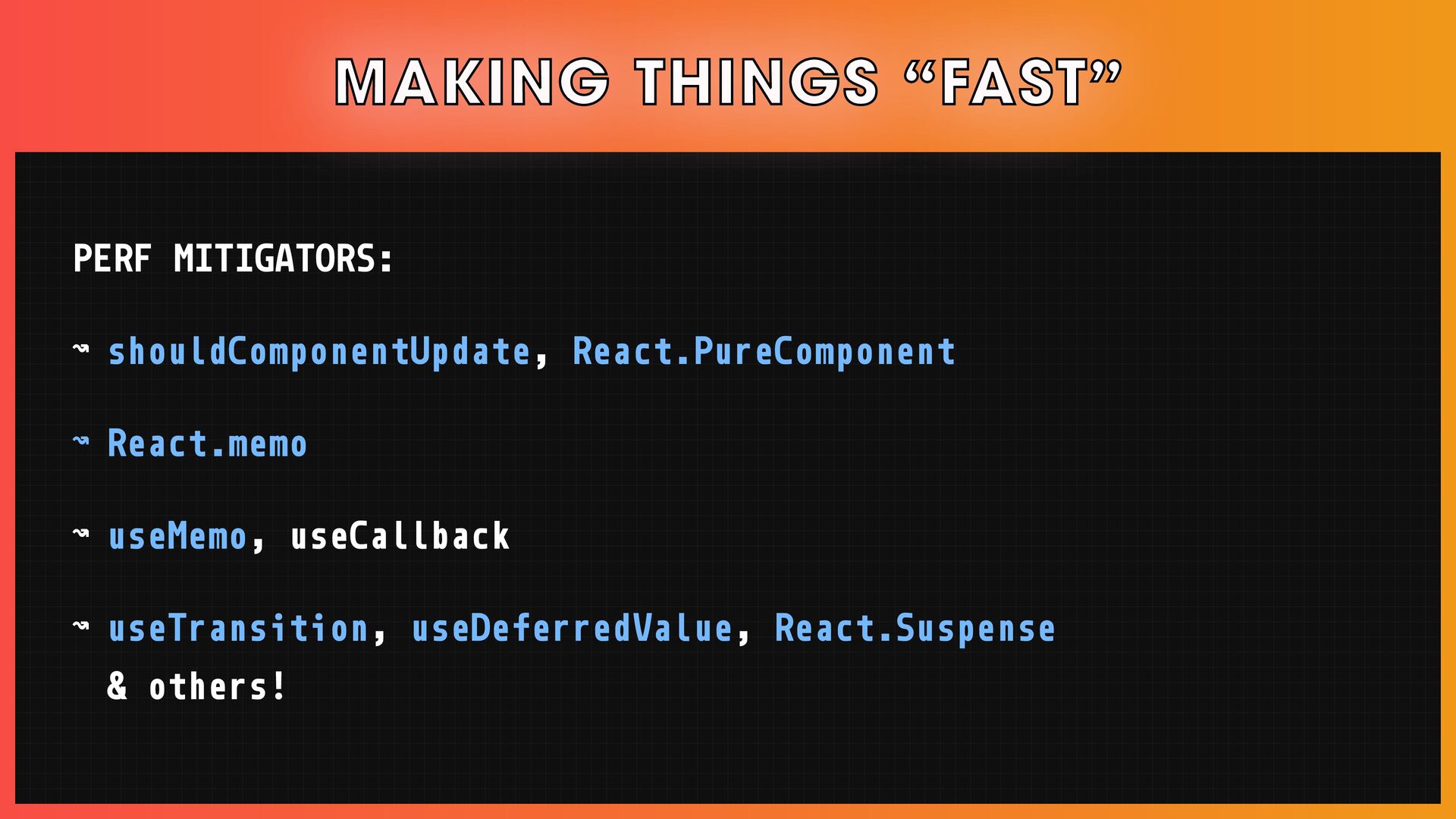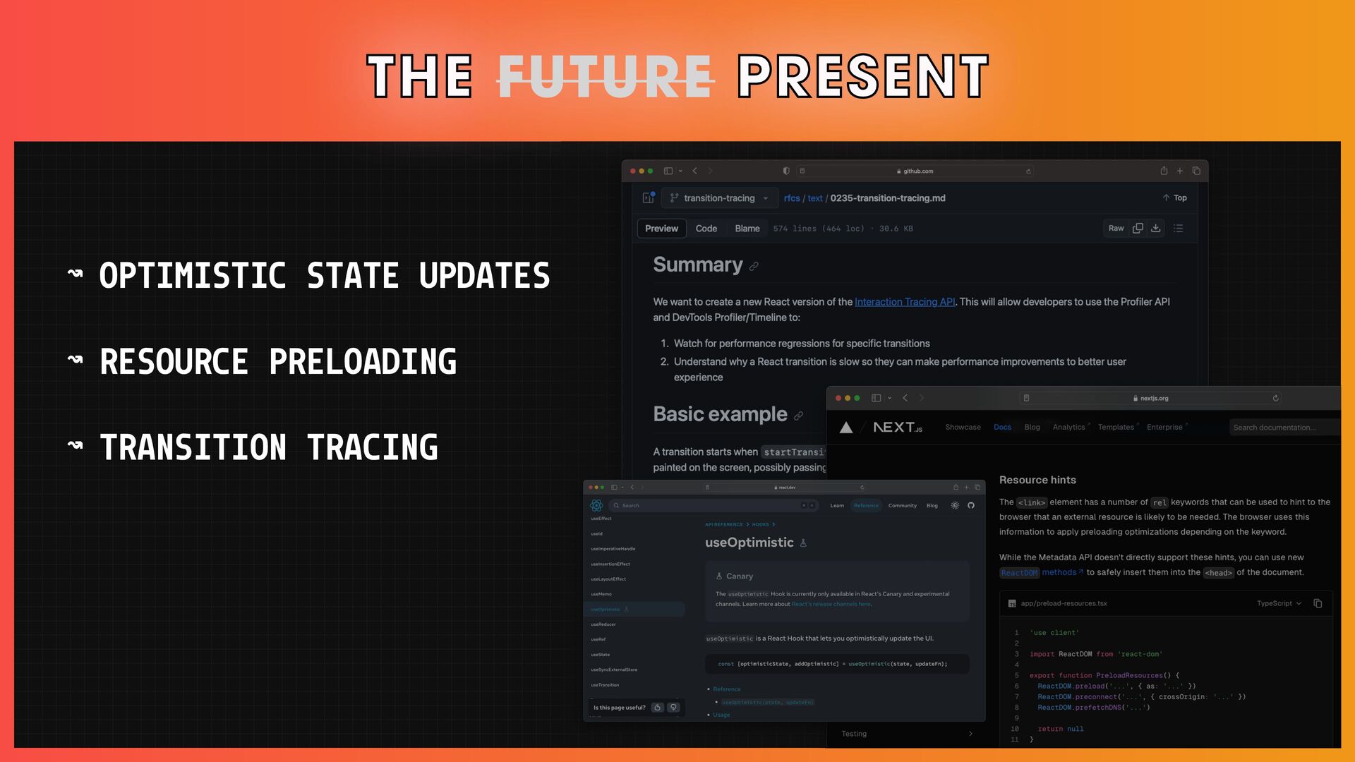 Writing fluid user interfaces becomes increasingly challenging as the application complexity increases. Also, in a world with a wide variety of network connections, any user can have a slow experience, and apps that delight users on fast connections can barely be usable on slow ones.