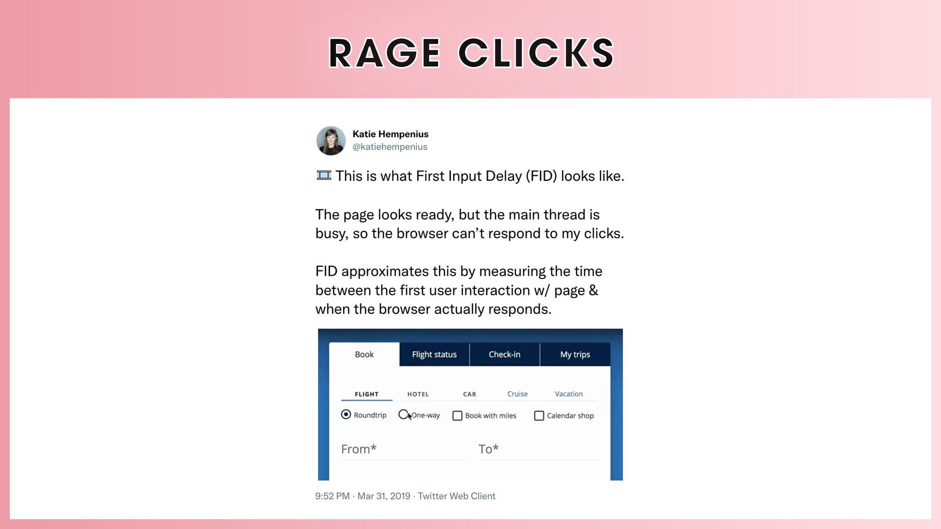 This session explores behaviors like rage clicks and cursor thrashing, emphasizing metrics that reflect user emotions and overall satisfaction. We’ll discuss the complexities of performance measurement, highlighting the need to look beyond single metrics. Ideal for those interested in understanding the business impact of site performance and the biases affecting user perceptions.