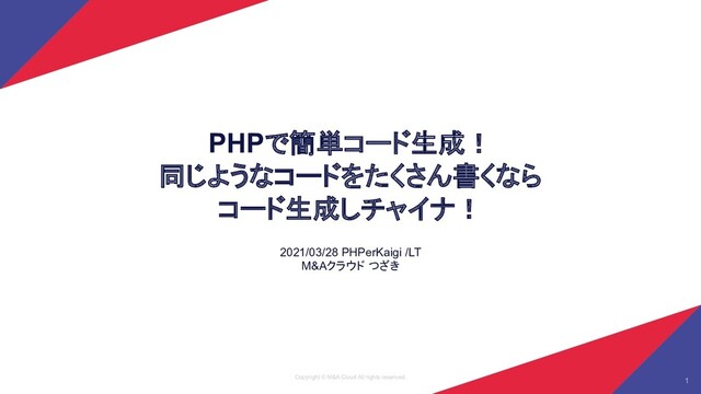 Copyright © M&A Cloud All rights reserved. PHPerKaigi 2021 LT