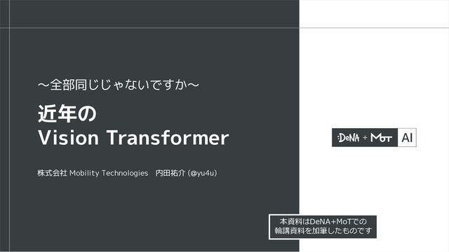 ▪ ViTの学習方法の確立、ImageNetだけでもCNN相当に ▪ MLP-Mixer [3] ▪ AttentionではなくMLPでもいいよ! ▪ ViTの改良やattentionの代替(MLP, pool, shift, LSTM) 乱立 背景 [1] A. Dosovitskiy, et al., "An Image is Worth 16x16 Words: Transformers for Image Recognition at Scale," in Proc. of ICLR, 2021. [2] H. Touvron, et al., "Training Data-efficient Image Transformers & Distillation Through Attention," in Proc. of ICLR'21. [3] I. Tolstikhin, et al., "MLP-Mixer: An all-MLP Architecture for Vision," in Proc. of NeurIPS'21.