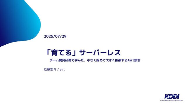 「育てる」サーバーレス 2025/07/29 近藤悠斗 / yut チーム開発研修で学んだ、小さく始めて大きく拡張するAWS設計