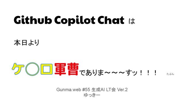 Github Copilot Chat 本日より は でありま〜〜〜すッ!!! Gunma.web #55 生成AI LT会