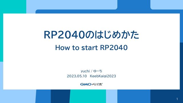 1 RP2040のはじめかた How to start RP2040 yuchi / ゆーち 2023.05.10