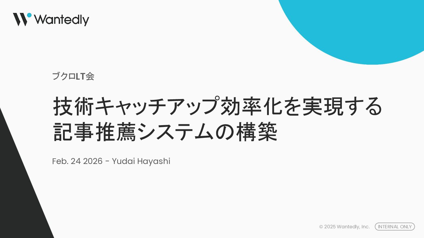 © 2025 Wantedly, Inc. INTERNAL ONLY 技術キャッチアップ効率化を実現する 記事推薦システムの構築 ブクロLT会 Feb.